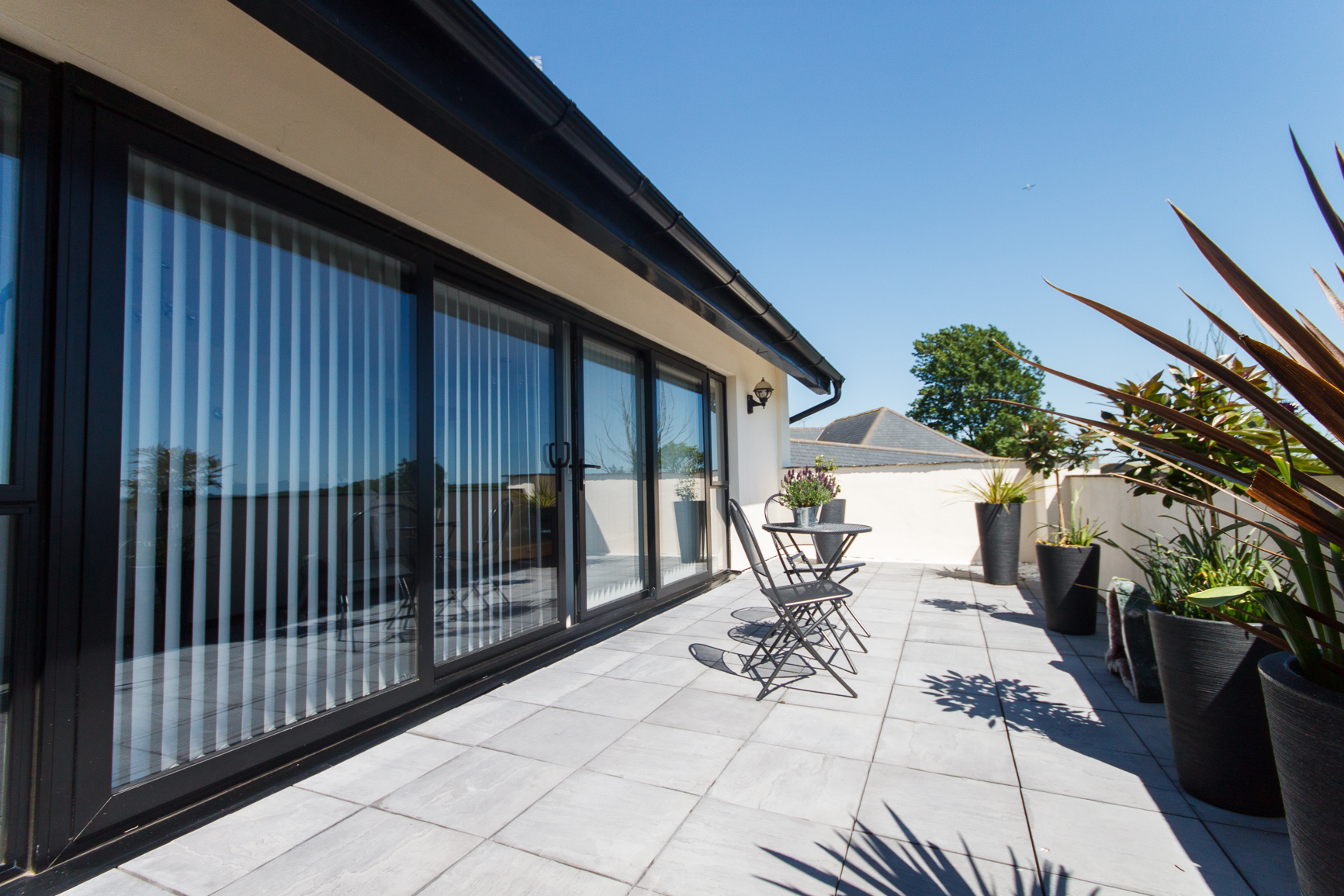 A huge feature the moment you enter the house is the cleverly designed terrace running virtually the length of the living/dining room with patio doors – just fabulous! Additionally, it offers the opportunity for comfortable home working if desired as the 3rd room on the Lower Ground Floor could easily be used for office/study space. Two of the double bedrooms have en-suite shower rooms and there is a separate large bathroom with shower. The stunningly fully fitted kitchen has above standard fixtures and fittings including oak veneer doors. There is a large utility and ground level cloakroom.
