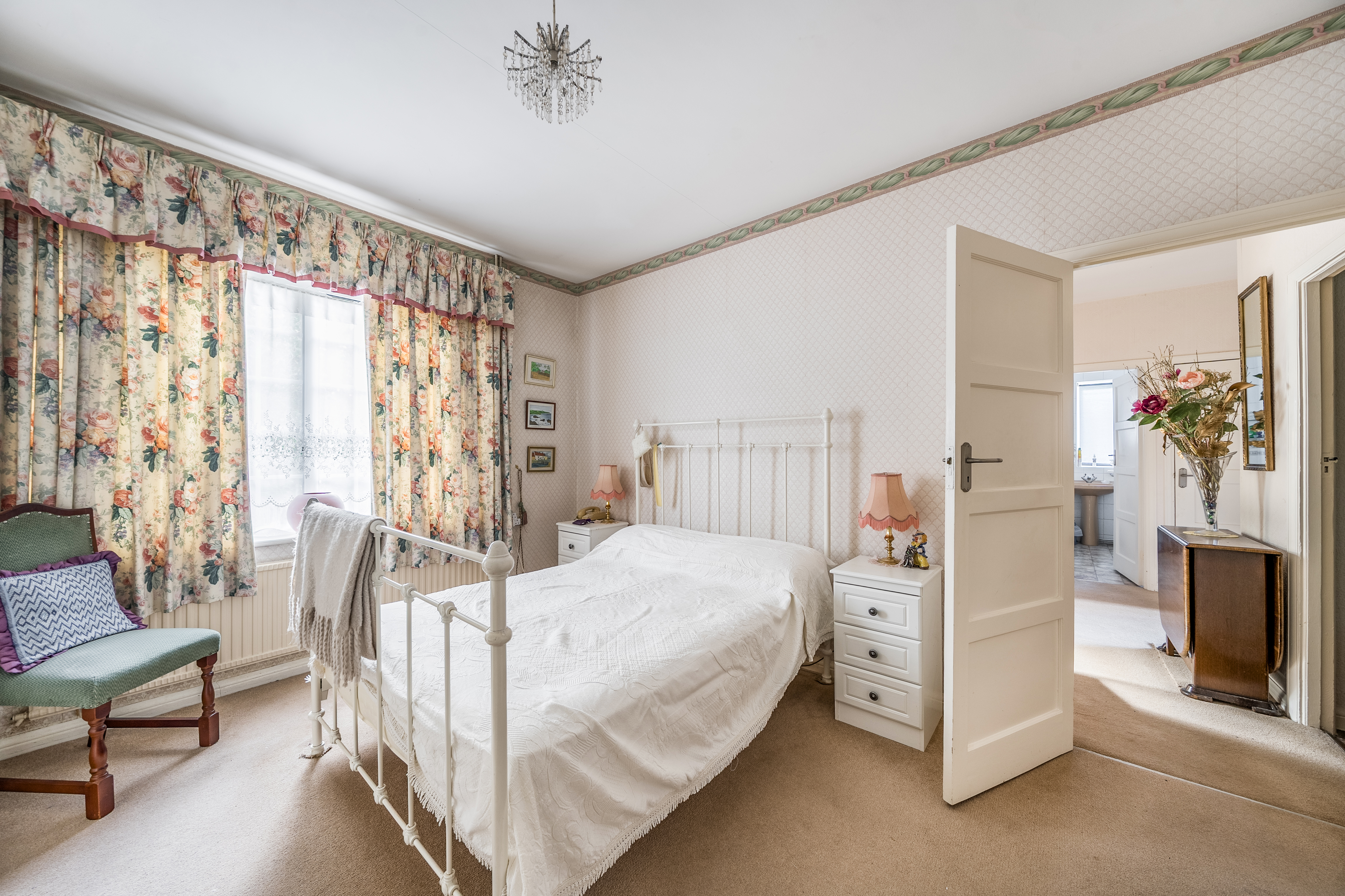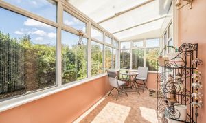 Offered chain-free, the property features a welcoming entrance hall leading to two generously proportioned bedrooms. The spacious sitting room forms the heart of the home, ideal for relaxing or entertaining, while a well-sized kitchen opens into a conservatory, creating a tranquil spot for morning coffee. A bathroom and separate W.C. complete the internal layout, providing practical convenience for residents.
