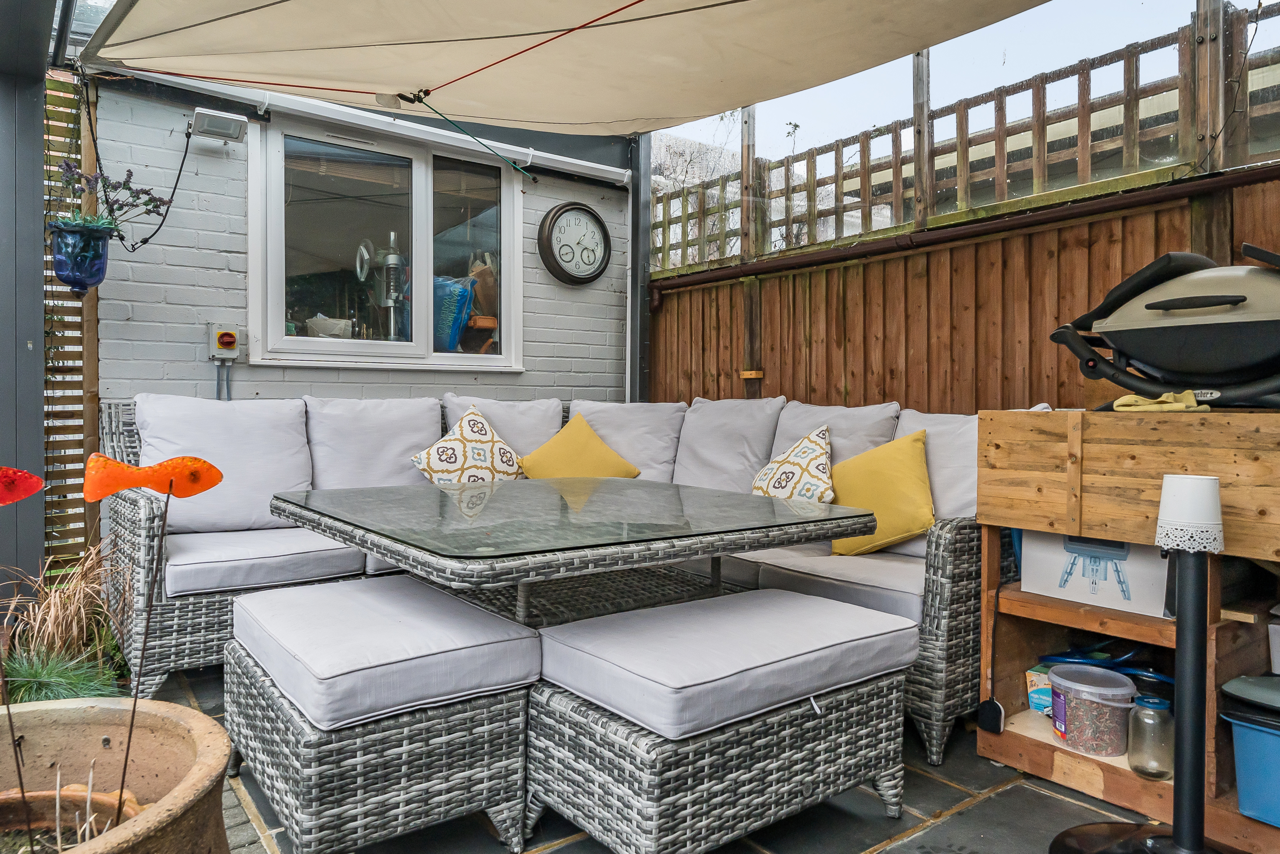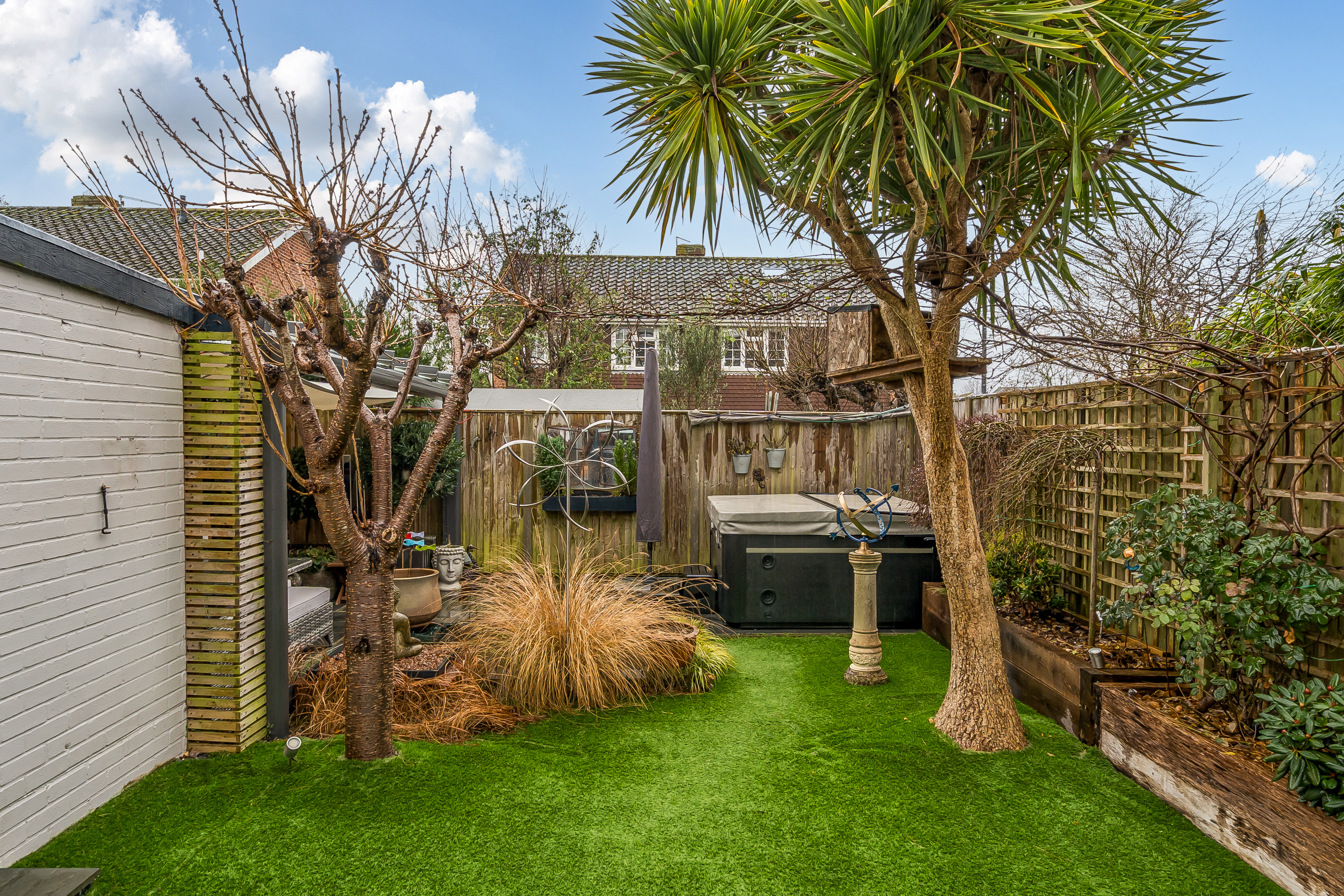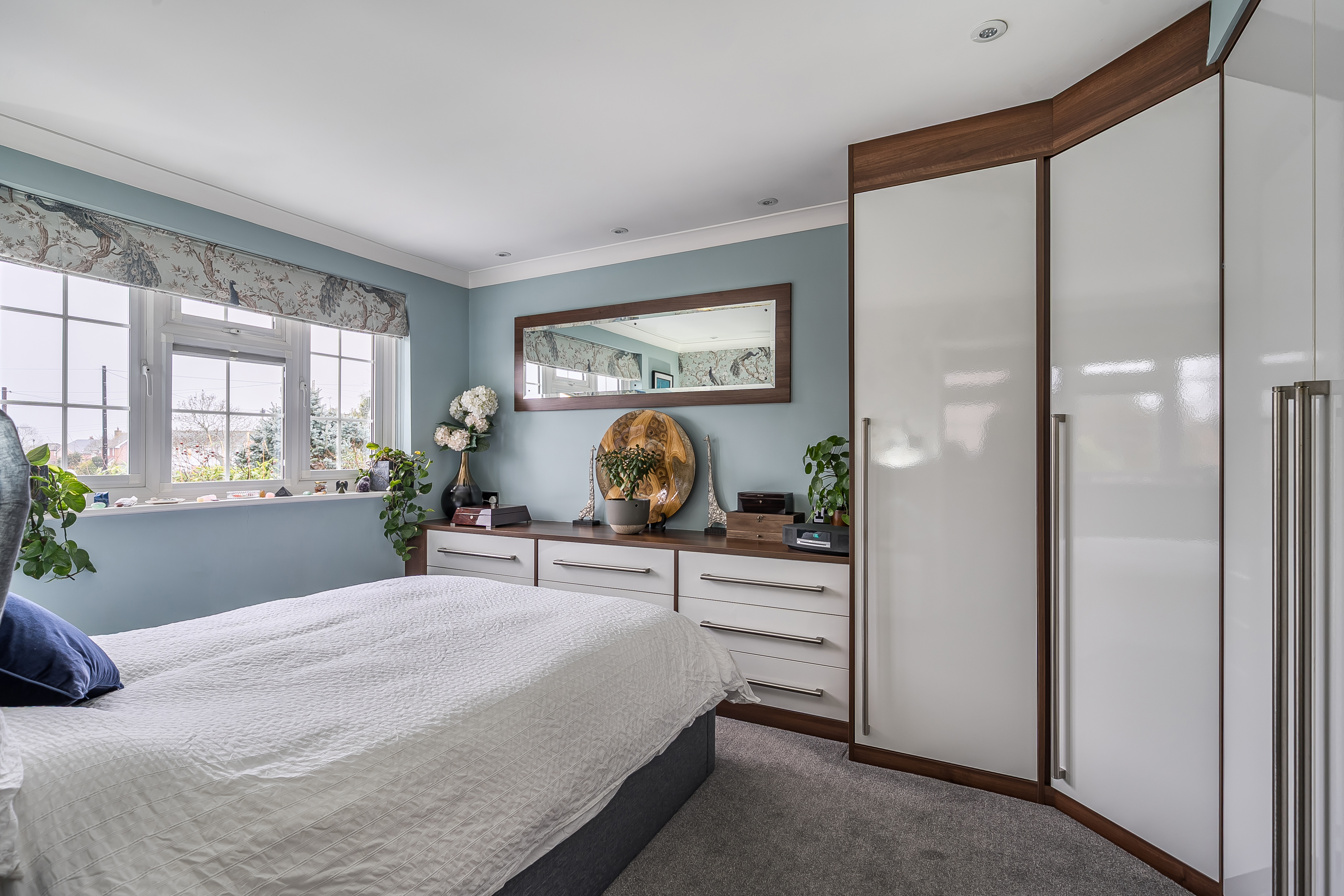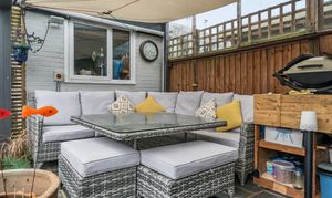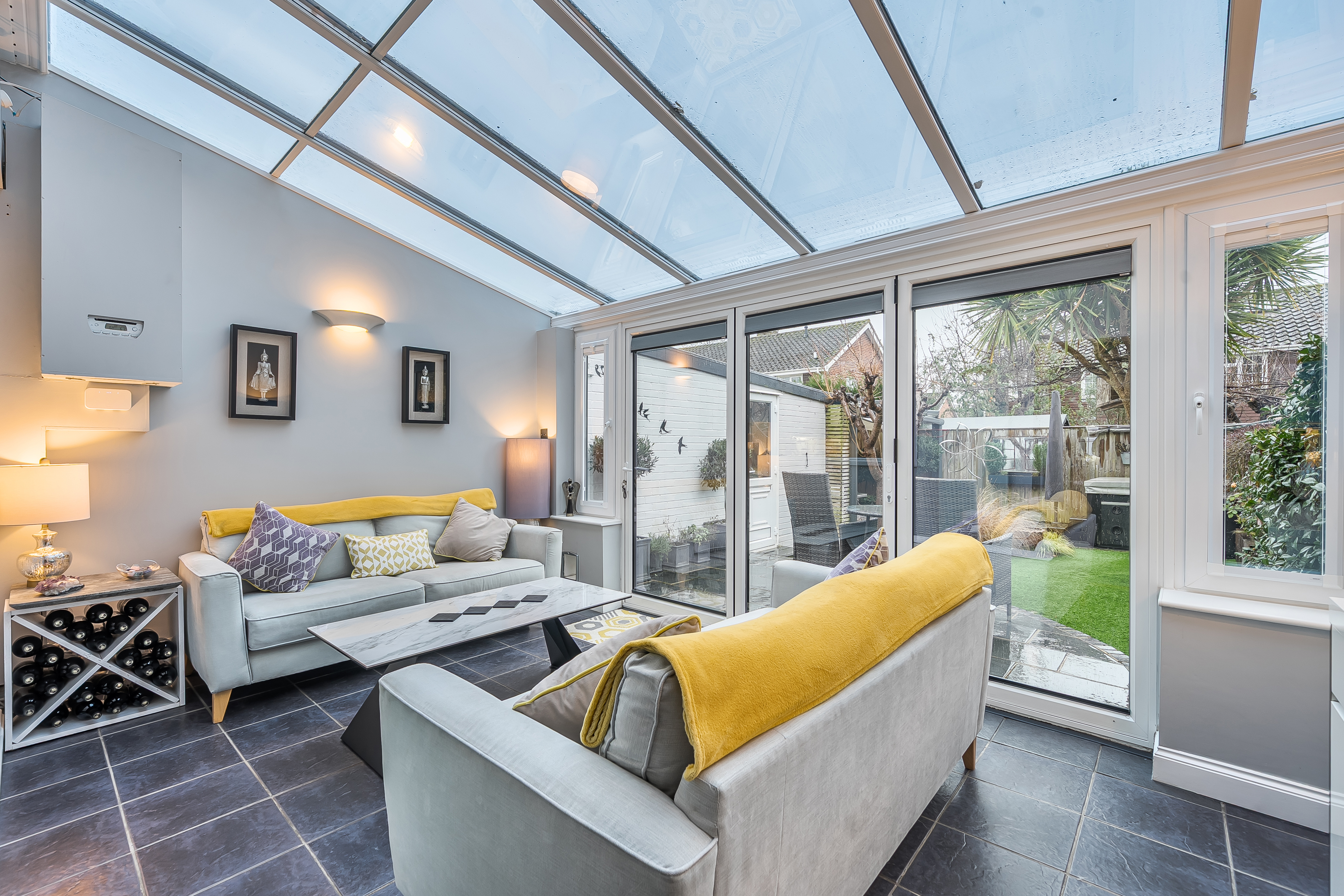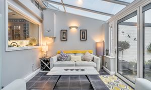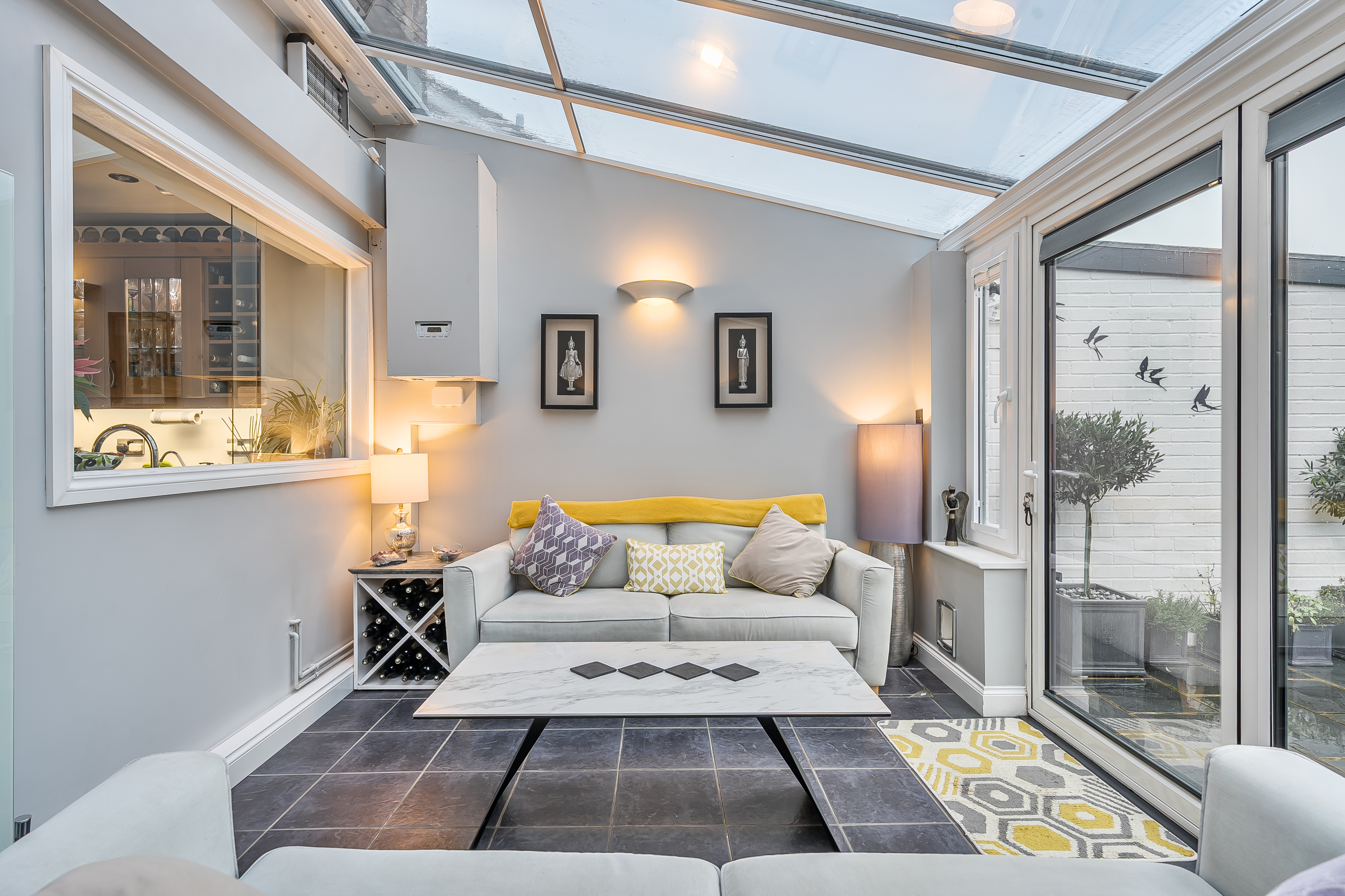 The ground floor opens to a welcoming hallway leading to the living room, which features a charming log-burning stove as a warm and inviting focal point. The bespoke kitchen is fitted with premium cabinetry and integrated appliances, marrying style with practicality, while a garden room to the rear, with reflective glass and underfloor heating, offers a tranquil space that seamlessly connects the interior with the landscaped garden. Upstairs, three generously proportioned bedrooms are served by a contemporary family bathroom, each finished to an exacting standard.