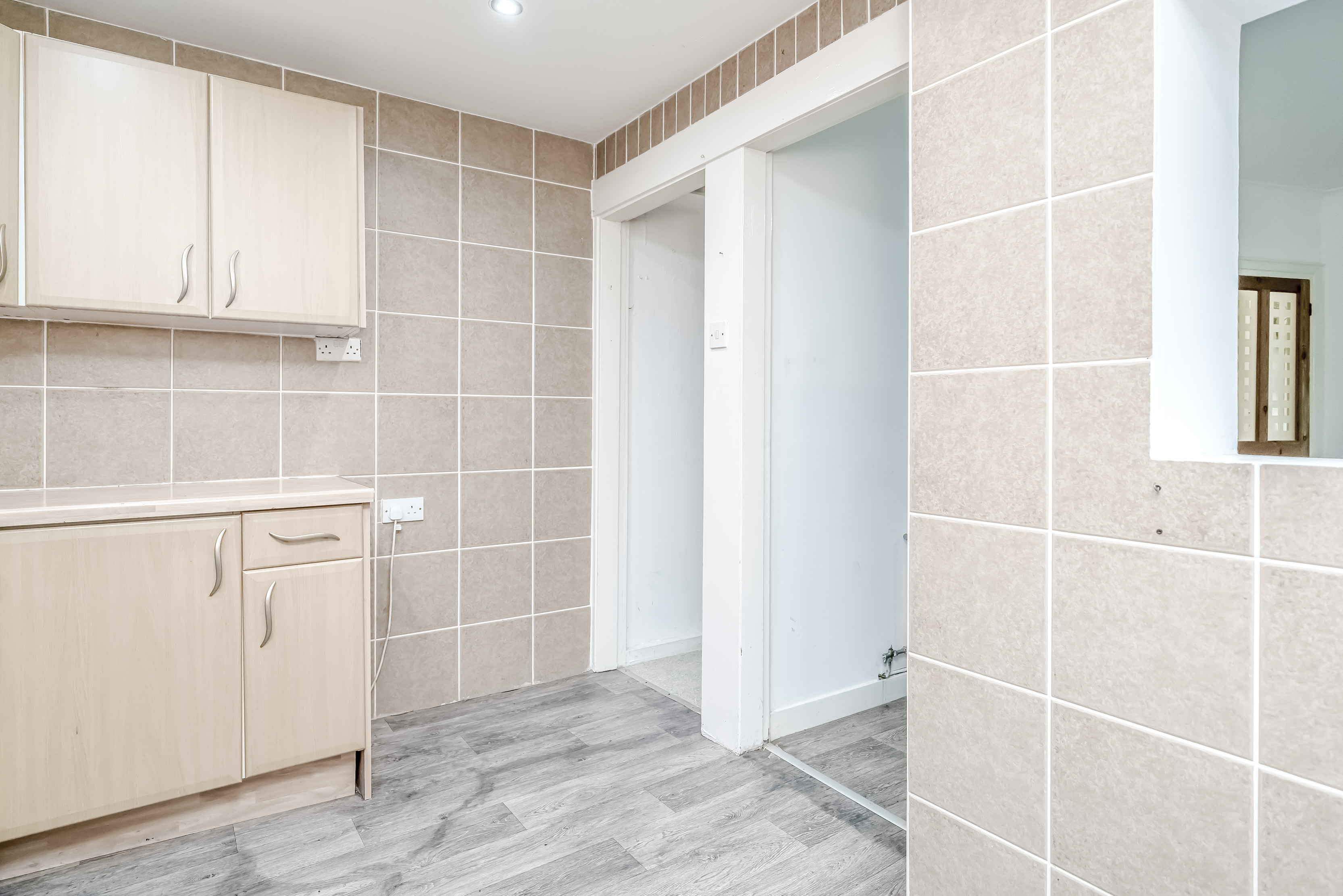 To the rear, the kitchen is practically arranged with useful worktop space and storage, with access out to the enclosed rear yard.