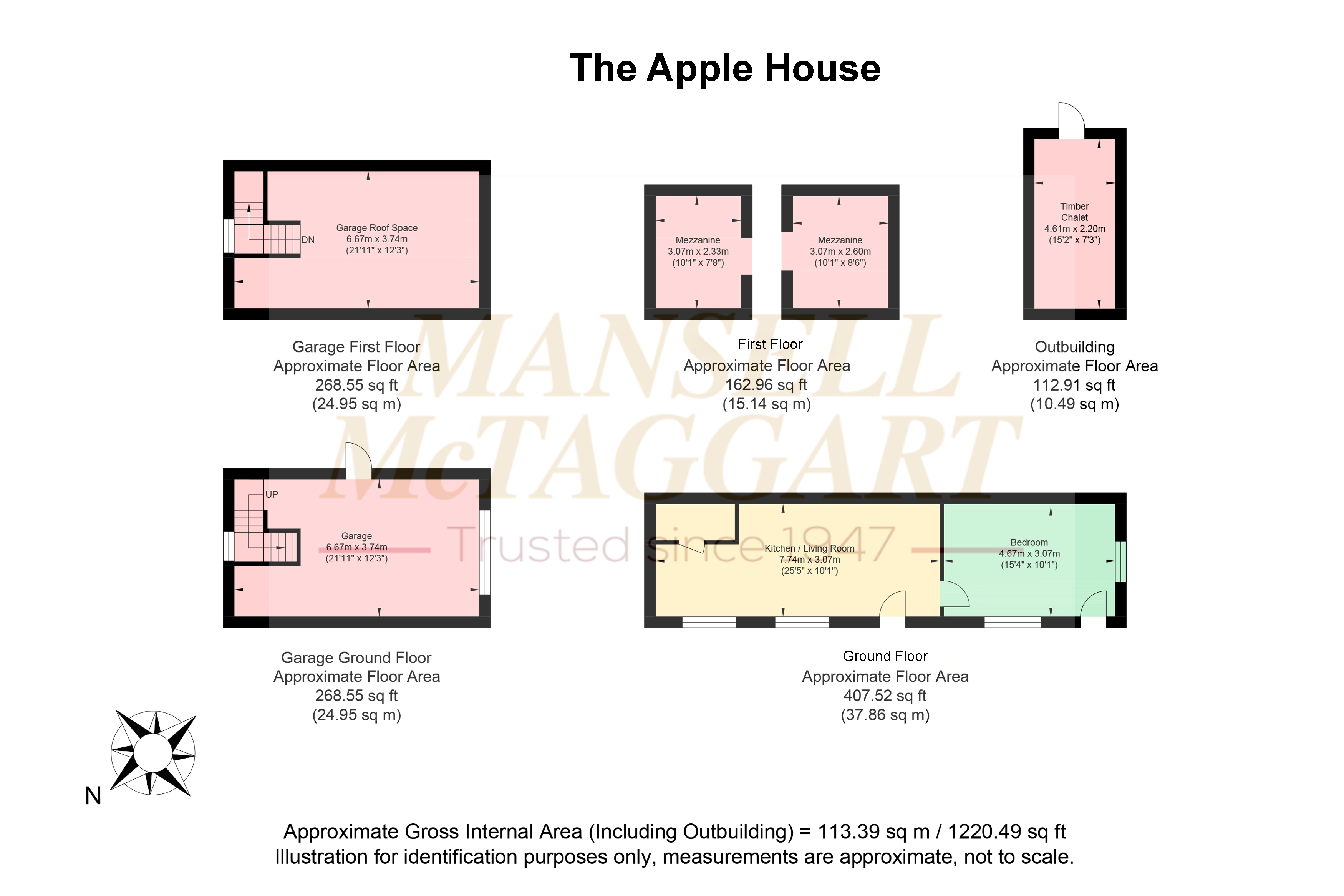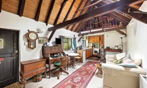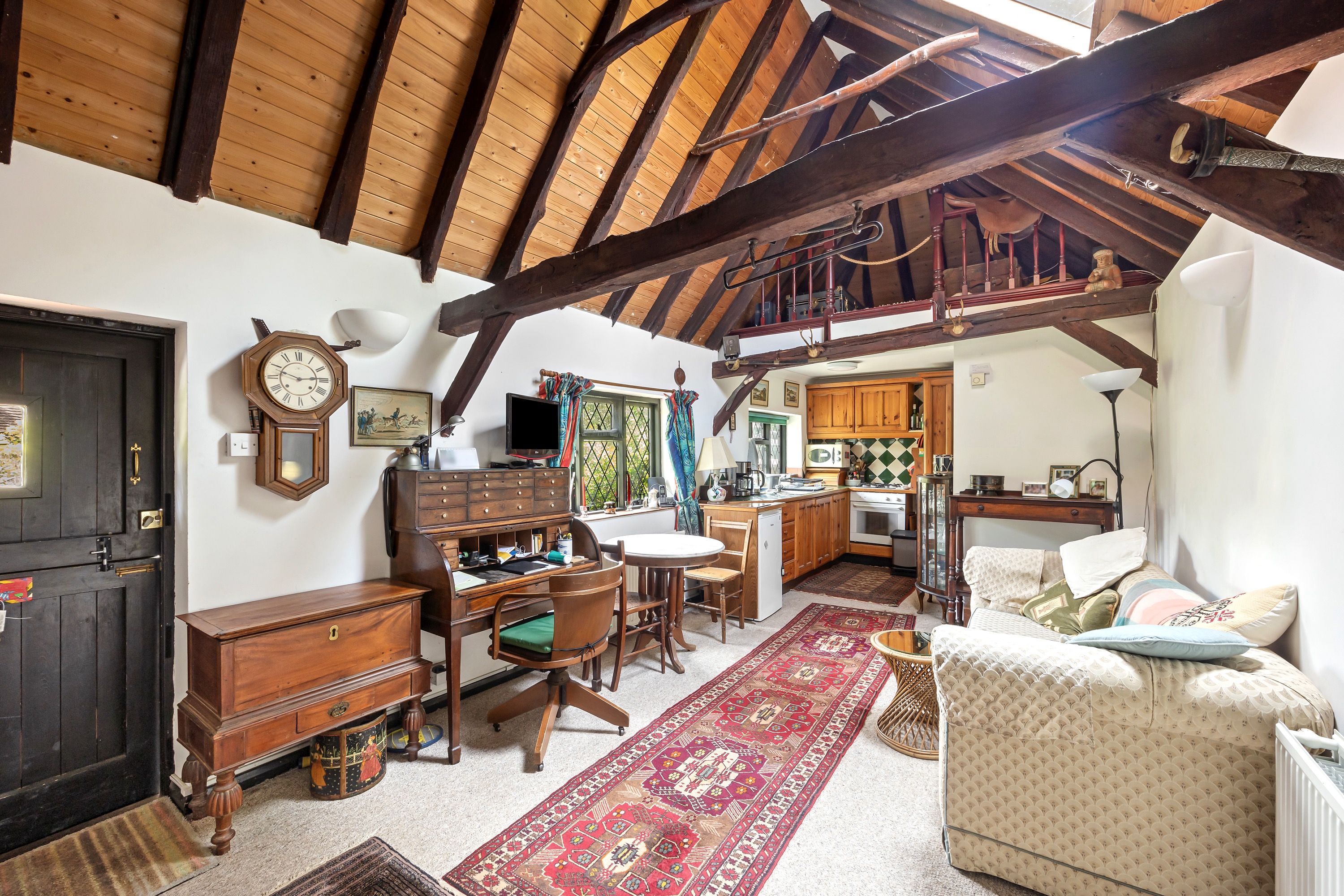 An adjoining secluded, self-contained cottage, The Apple House, set discreetly in its own secret garden. Ideal for an individual occupier, student accommodation or to generate an income from letting. Includes a further area of garden with mature apple tree, small pond and a double-storey garage with lapsed planning permission to convert to residential use.