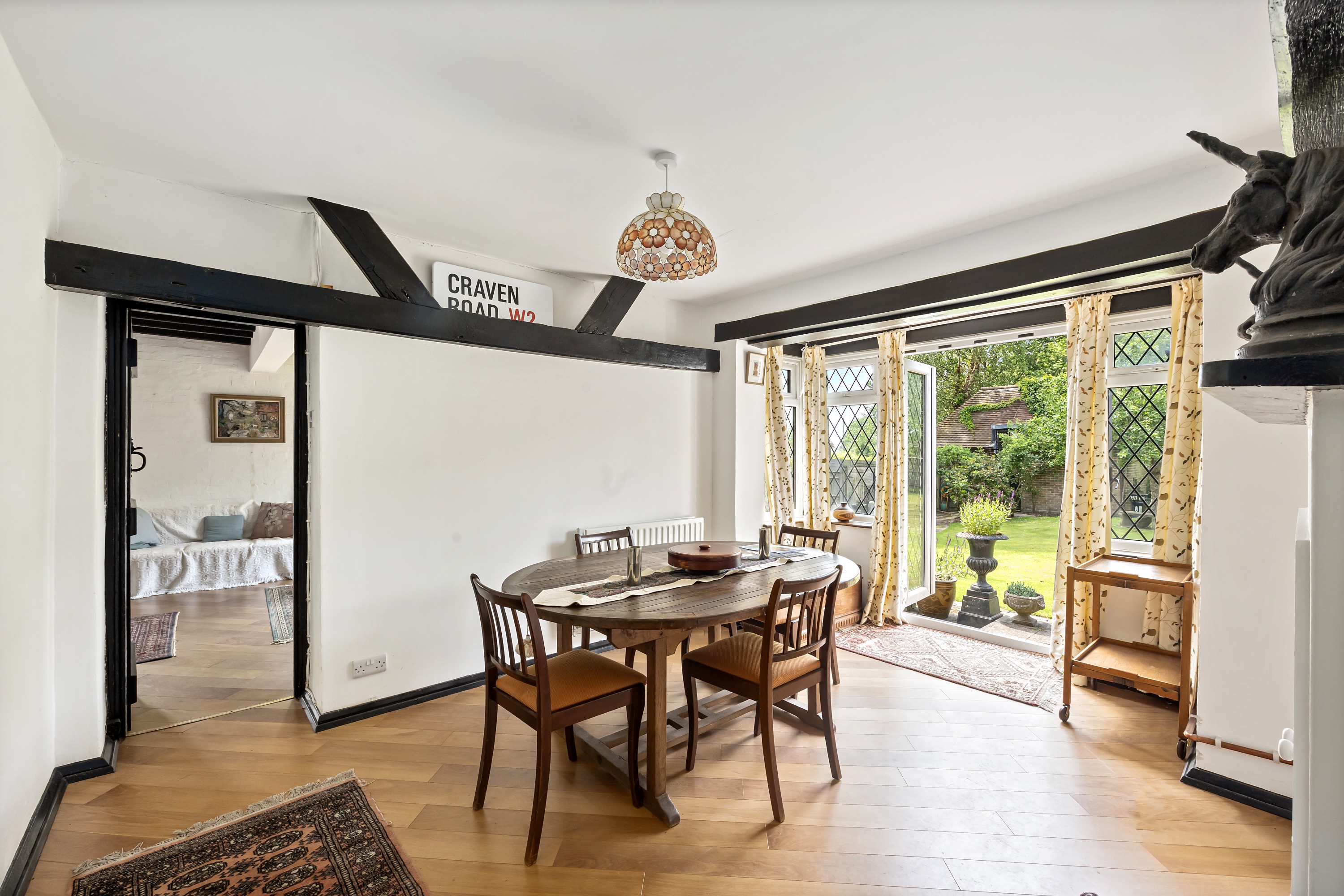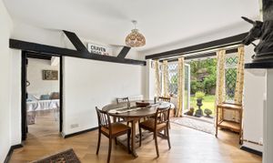 Spacious and bright room with uPVC double-glazed windows and French doors into the rear garden. More exposed beams and door to the kitchen/breakfast room.