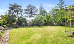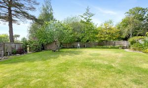 A spacious south/west facing garden with large lawn, sunny terrace and patio for outside seating and shingled areas for pots, water features etc. Enclosed fully by wooden fence panels, access to the side door of the garage, greenhouse and more.