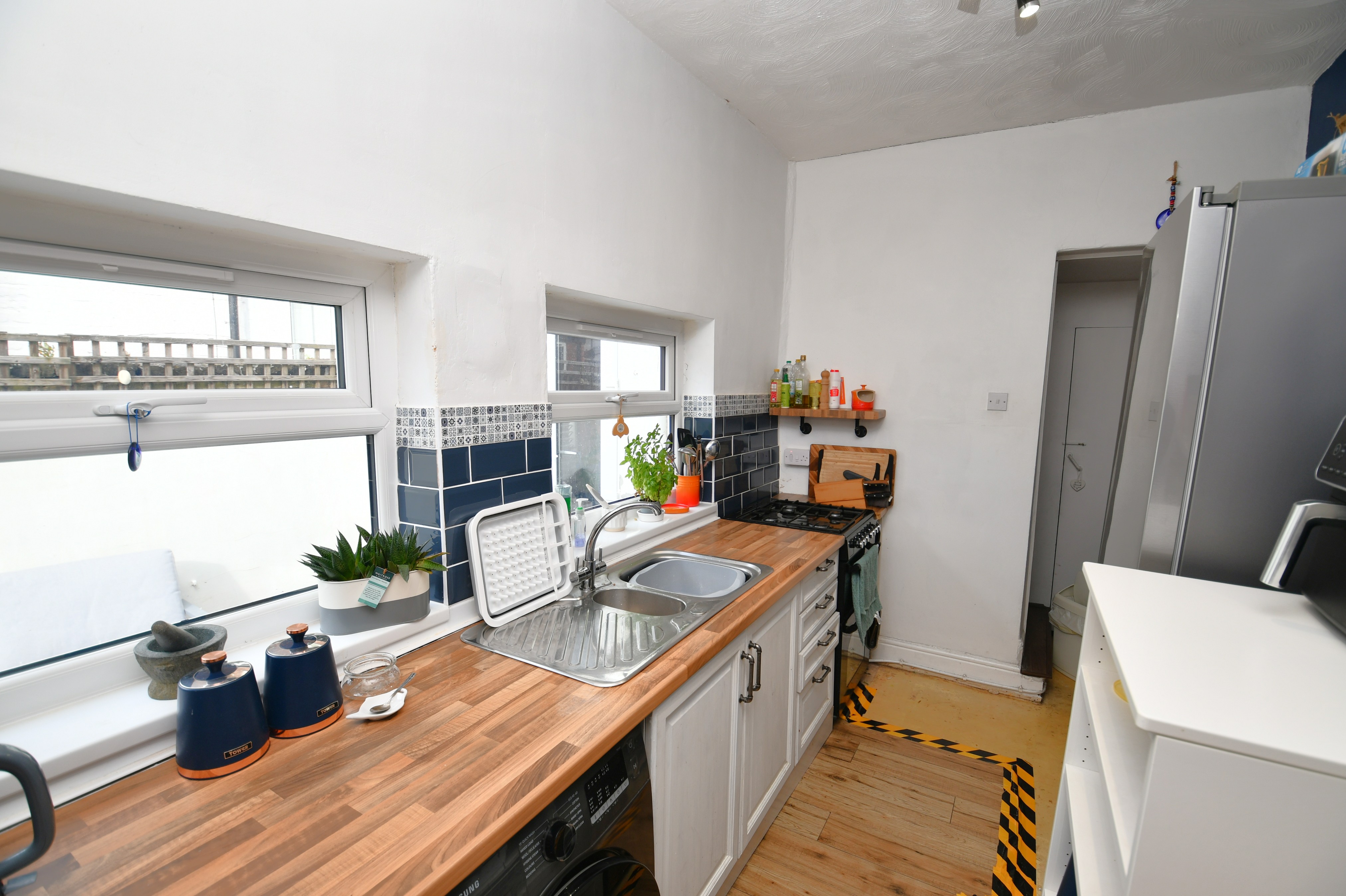 On the first floor, there are two double bedrooms and a stylish, three-piece bathroom. On the top floor, there is a large double bedroom.