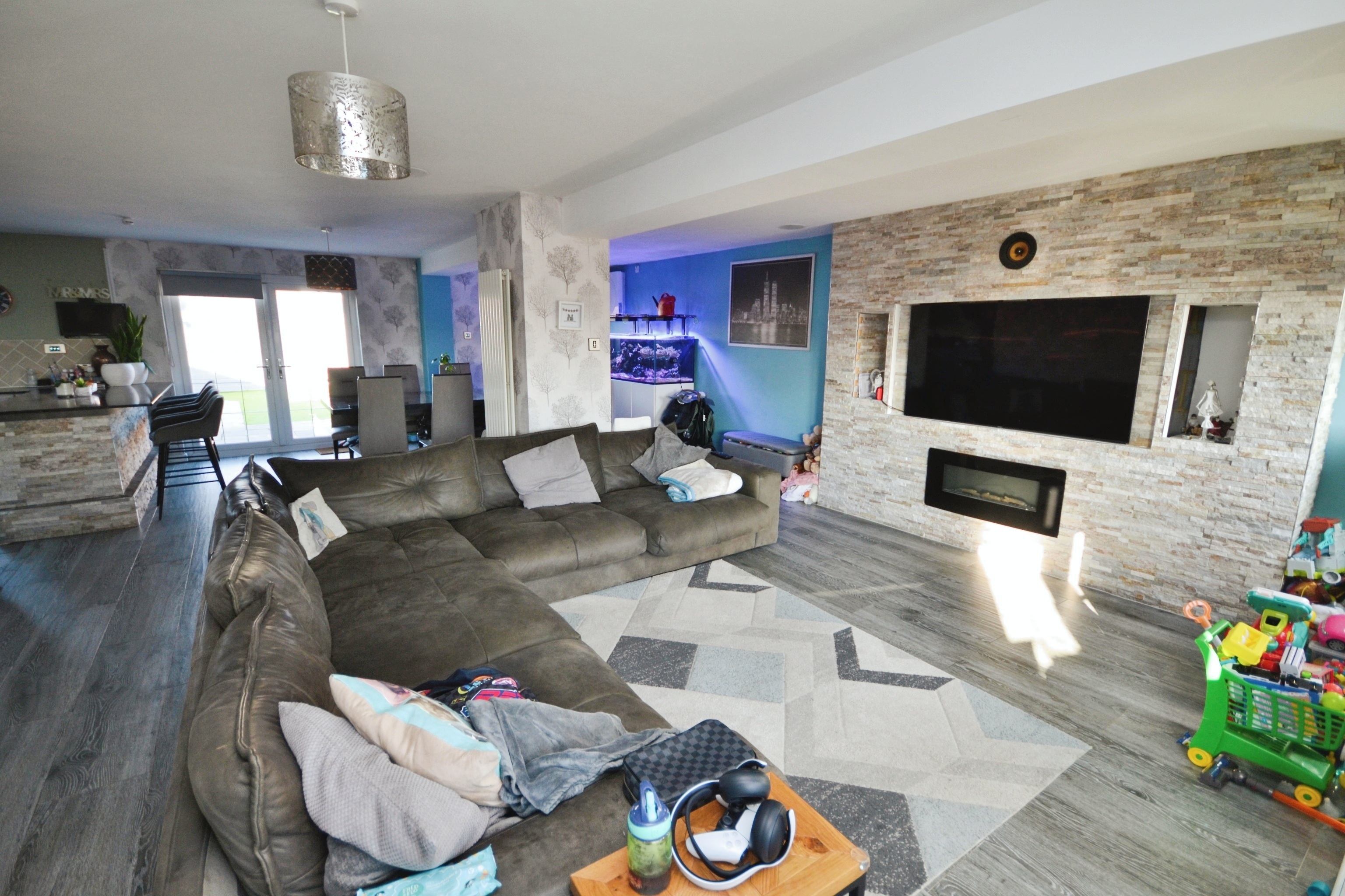 Ground floor spacious family living including entrance porch leading to entrance hallway, leading to the modern four piece ground floor family bathroom. The main living space to the ground floor is the open plan living space incorporating lounge, kitchen and dining area. At 28’ x 28’ this space is ideal for family living or entertaining guests.