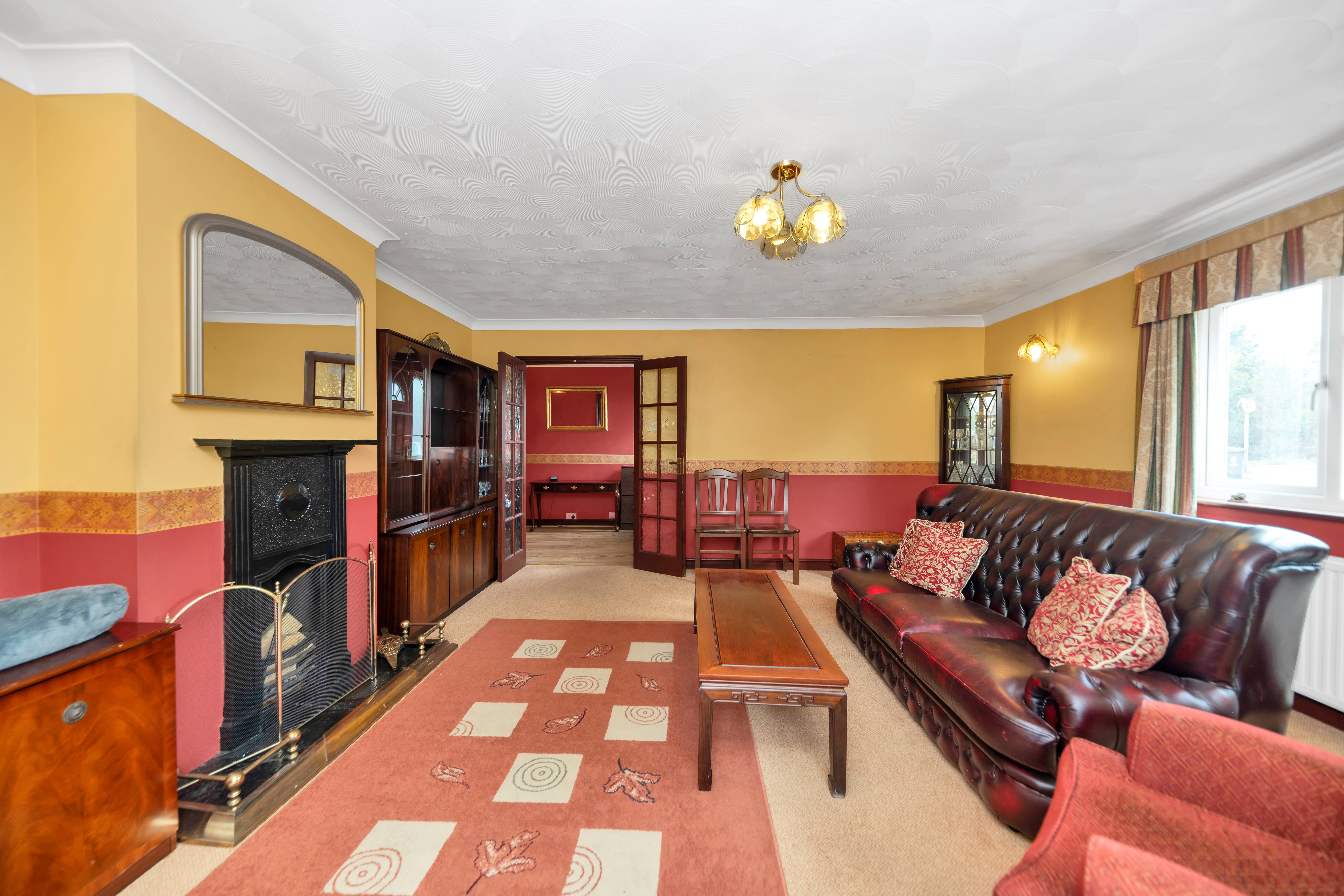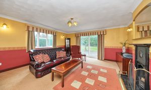 This spacious property benefits from a very generous and attractive frontage, front lawn wrap around gardens and surrounded by mature hedgerows. Once inside, the entrance hallway is wide and bright, with wood flooring, room for furniture, pendant lighting, integrated storage, and doors through to the entire living space, including a cloakroom WC.