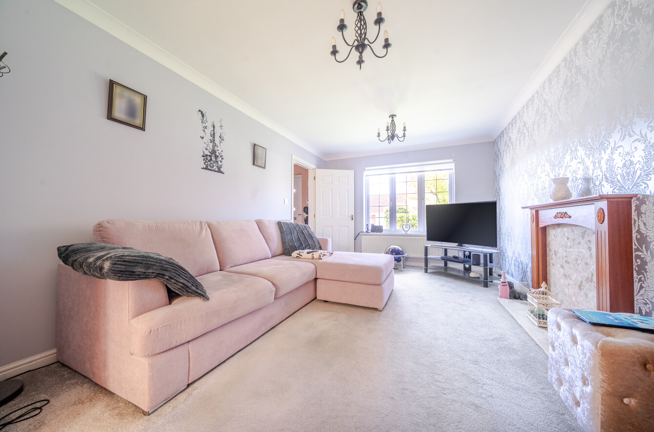 This attractive four-bedroom detached family home enjoys a desirable cul-de-sac position in a popular village location. The front elevation features a part-tiled finish with leaded light double glazed windows, while an open porch with a semi-circular brick archway provides a welcoming first impression.