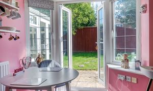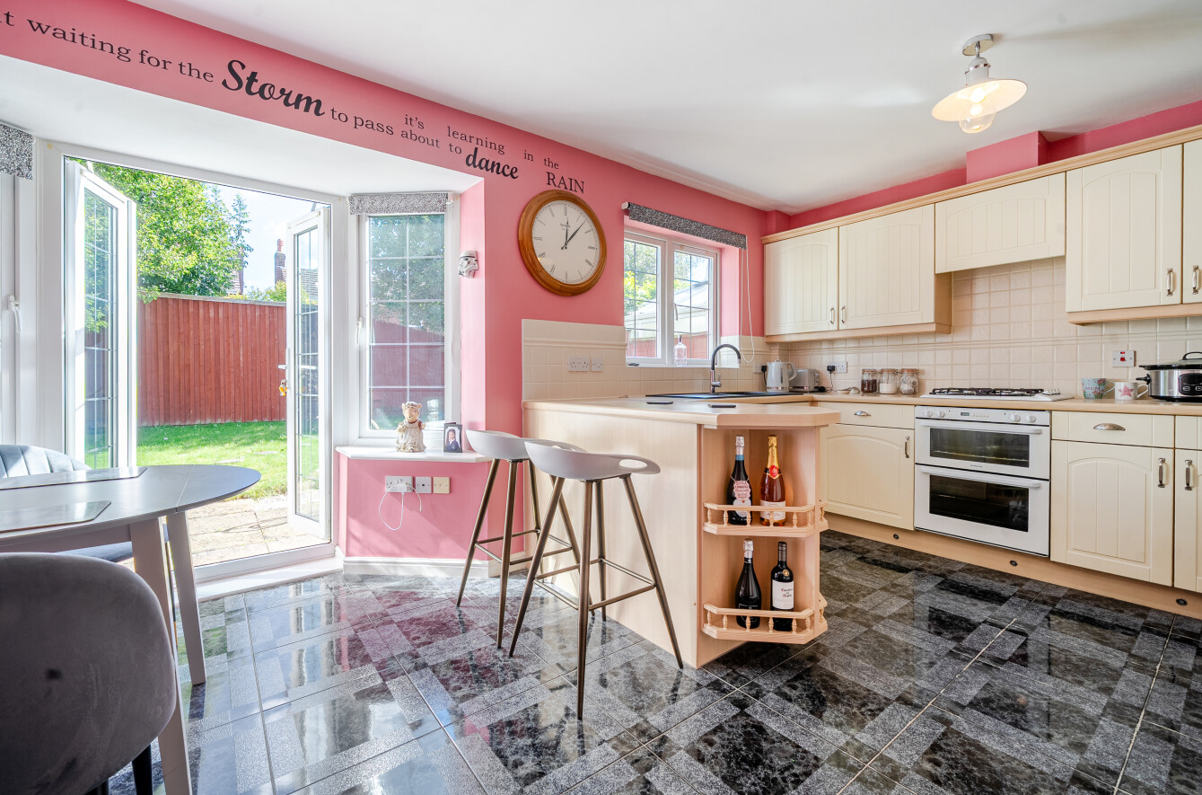 - Shaker style kitchen with breakfast bar and French doors to garden