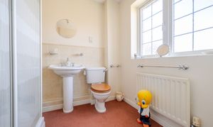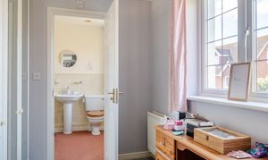 Upstairs, there are four bedrooms, including a principal suite with dressing area and en-suite shower room. The remaining bedrooms are served by a modern family bathroom, making this a practical home for family living.