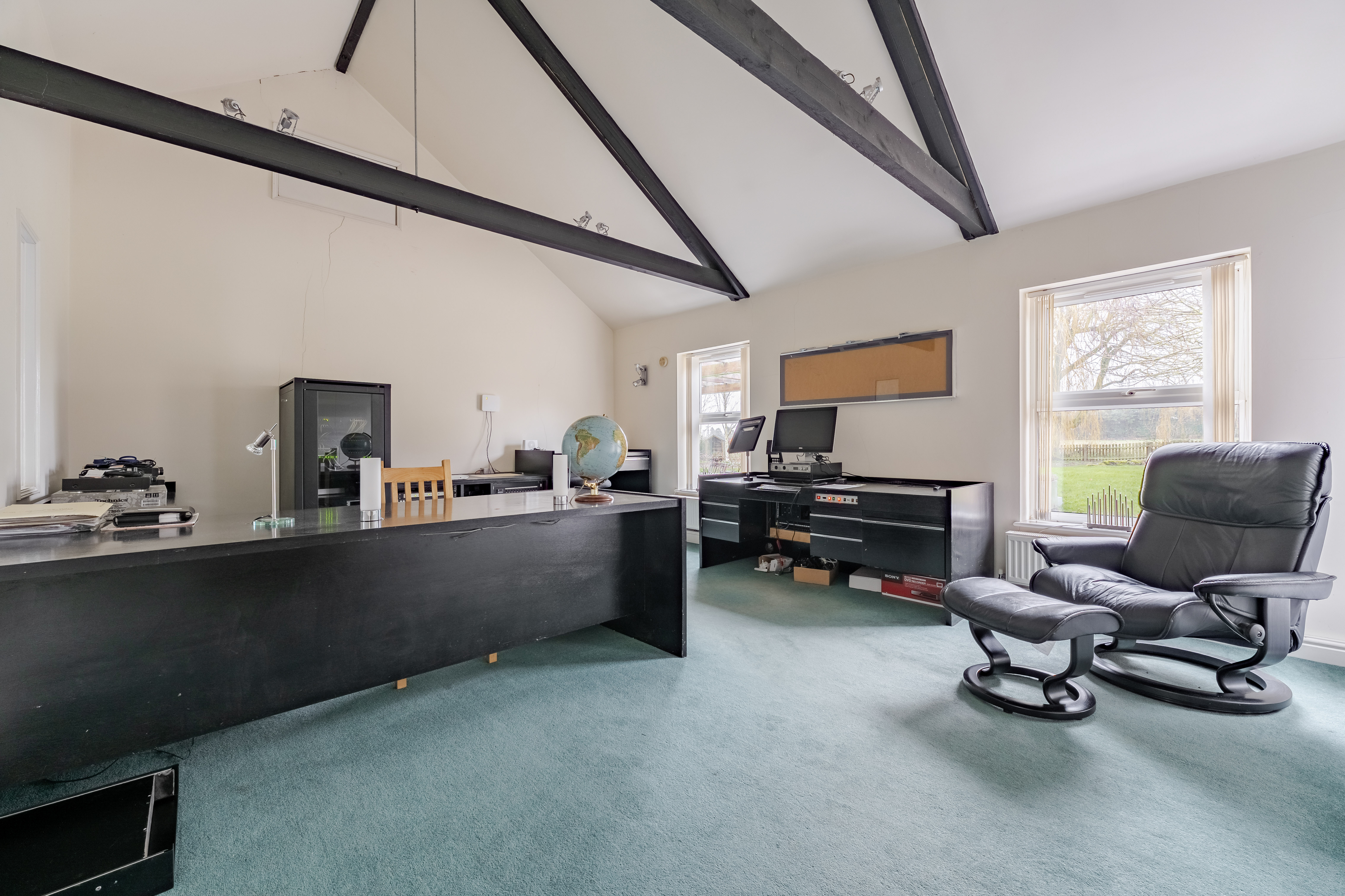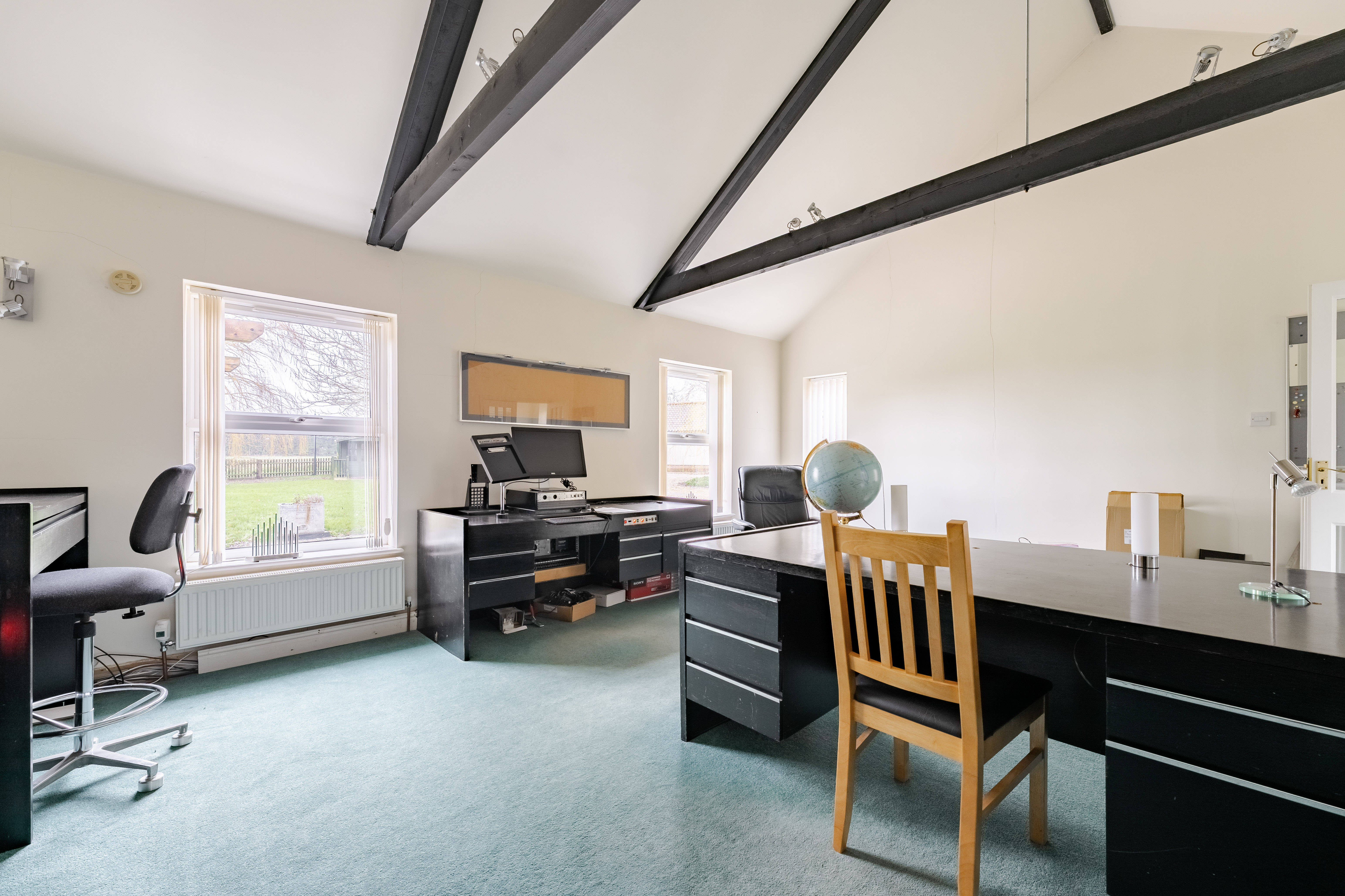 The house itself provides spacious and versatile accommodation, well suited to modern family life. A central hallway creates a natural flow through the ground floor, leading to a generous lounge with an adjoining dining area, ideal for both everyday living and entertaining. Additional reception rooms, including a study and a further office or reception room, offer excellent flexibility for home working or family needs.