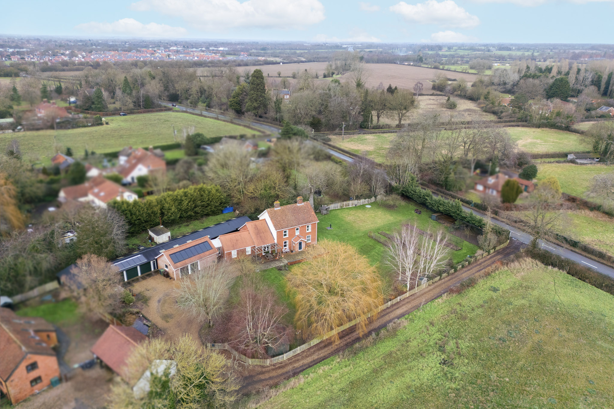 - Set well back from the road in a private countryside position, offering a peaceful sense of seclusion while remaining within walking distance of the town