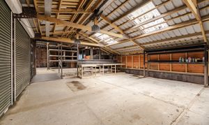 A brick-built double garage with solar panels is attached to the house and benefits from internal access. Beyond this lies a substantial collection of workshops and storage buildings, offering remarkable flexibility. These spaces are ideal for a wide variety of uses including hobbies, home-based business activities, storage, or potential annexe accommodation, subject to the necessary consents. The scale, layout and separation of these buildings make them particularly attractive for those seeking multi-generational living or adaptable workspace without compromising the main residence.