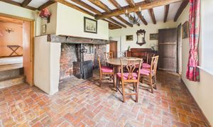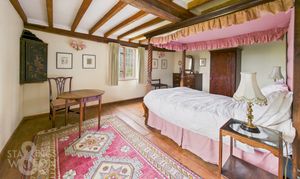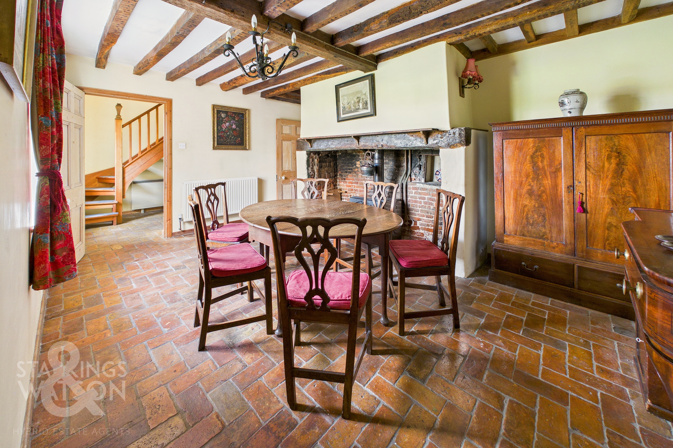 This magnificent GRADE II LISTED SEMI-DETACHED RESIDENCE dates back to the 1680’s, offering close to 2,500 SQ. FT (stms) of beautifully presented accommodation, seamlessly BLENDNG PERIOD CHARM with modern comfort. Occupying a 0.24 ACRE PLOT, once inside, you are greeted by a welcoming entrance hall leading to TWO CHARACTERFUL RECEPTION ROOMS, each boasting ORIGINAL FEATURE FIREPLACES and generous proportions, ideal for entertaining or relaxing in style. The FARMHOUSE STYLE KITCHEN is fitted with bespoke cabinetry and workspace, while a separate CLOAK/UTILITY ROOM provides practical convenience. The accommodation is thoughtfully arranged over four floors, with FOUR SPACIOUS BEDROOMS across the top two floors, each enjoying individual CHRACTER and NATURAL LIGHT. The FAMILY BATHROOM is tastefully appointed, featuring a SHOWER and traditional fixtures. Additional highlights include a USEFUL BASEMENT STORAGE area, perfect for wine, hobbies, or household essentials. Throughout the home, classic windows, EXPOSED BEAMS, and original flooring create a warm and inviting atmosphere, making this an exceptional period property with timeless appeal. THE GREAT OUTDOORS is equally impressive, with extensive LAWNED GARDENS offering PANORAMIC FIELD VIEWS, providing a tranquil backdrop for al fresco dining, family gatherings, or simply enjoying the changing seasons. The gated driveway offers ample off-road parking and leads to an ADJOINING GARAGE for secure storage or workshop use.