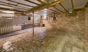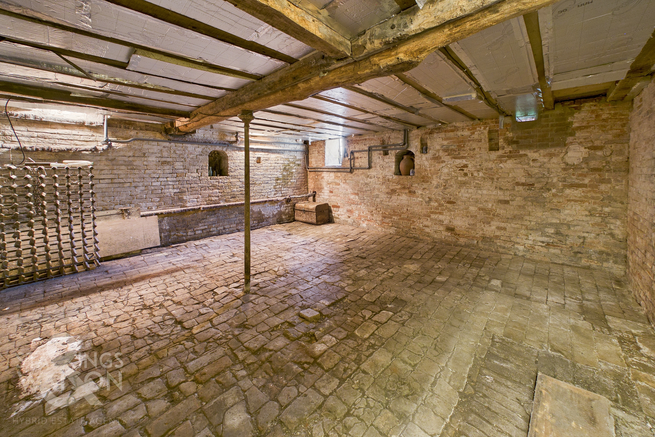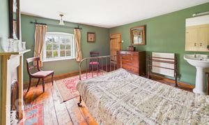 Heading inside, the hall entrance offers a brick tile floor creating a characterful entrance with stairs rising to the first floor landing and a window giving a hint of the gardens beyond. A door leads off to the main living space and to the adjacent kitchen. The kitchen offers a farmhouse style feel with a bespoke range of handcrafted units with an inset ceramic butler sink. original feature fireplace and space for an electric cooker and general white goods including a fridge freezer and dishwasher. Wood block flooring flows through the space with a window facing to front and rear. The main living space starts with the formal dining room, continue with brick tile flooring underfoot and a feature inglenook fireplace with an exposed timber beam and brickwork creating a focal point to the room. Exposed timber beams can be found above with a window facing to the rear offering natural light, and a door and steps taking you to the formal sitting room. Centred on a grand feature inglenook open fireplace, the formal sitting room offers stripped wood flooring underfoot, twin front and side facing windows, exposed timber beams and stairs leading down to the basement. The rear lobby leads from the dining room, with a door leading to the garden, complete with brick tile flooring underfoot and a further door taking you to the ground floor cloak/utility room. Finished with a white two piece suite with tiled splash-backs, brick tile flooring continues through the space, with work surface allowing space for a washing machine and tumble dryer.