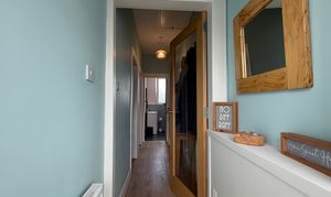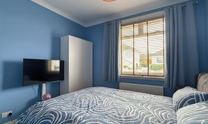 Upon entering, a front porch leads into a welcoming hallway that sets the tone for the rest of the home. The generously sized living room features a striking bay window, flooding the space with natural light and providing a perfect spot to relax or entertain. The well-appointed modern kitchen comes complete with white goods, offering ample storage and workspace for every-day living. To the rear, a delightful sunroom provides a tranquil setting in which to appreciate the impressive views, whatever the weather. Both bedrooms are comfortable doubles, each thoughtfully decorated and offering plenty of space for furniture and storage.