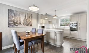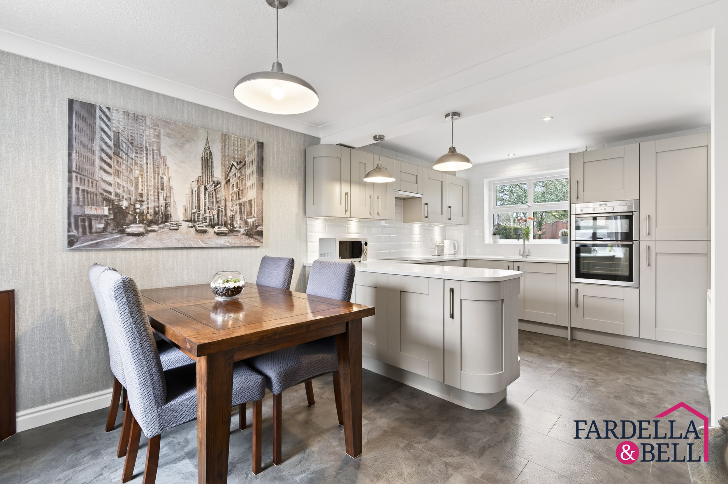 This beautifully presented home is a testament to the current owner. Upon entering, the ground floor opens into a spacious lounge which features a contemporary fireplace with natural stone surround, surround and large dual aspect windows that ensures the space is bright and welcoming. The standout feature of the ground floor is the bespoke kitchen which has been seamlessly opened up into the dining area to create a social hub. It boasts sleek cabinetry complemented by premium granite work surfaces and high quality integrated appliances including a NEFF double oven, FRANKE sink, FRANKE taps and induction hob. Both the living room and kitchen boast a stunning wooded aspect to the rear. A convenient downstairs WC completes the ground floor.