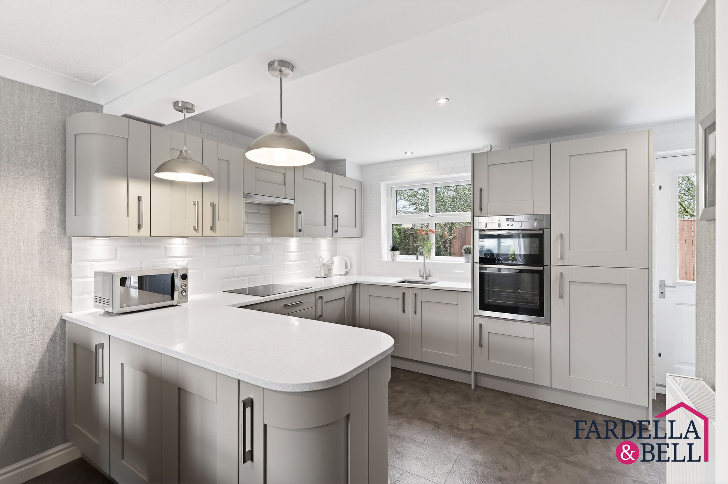 Step inside to a well-presented and thoughtfully arranged home. The spacious lounge is bright and inviting, featuring dual aspect views and focal limestone fireplace. To the rear, the stylish open dining kitchen offers a range of bespoke fitted units, integrated appliances and granite surfaces, with a dining area and direct access to the garden. Upstairs, there are two well-proportioned double bedrooms, both tastefully finished. The third bedroom is currently used as a dressing room and benefits from fitted wardrobes, offering excellent storage, but can easily be reinstated as a functional bedroom or home office. The master benefits from a modern en-suite, while the main bathroom comprises of a three-piece suite. A ground floor WC adds further practicality and completes the ground floor. Neutral décor runs throughout, making this a ready to move into home and a fantastic opportunity in a highly sought after area.