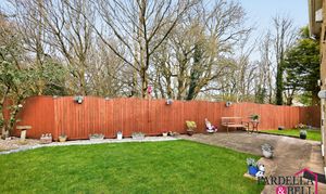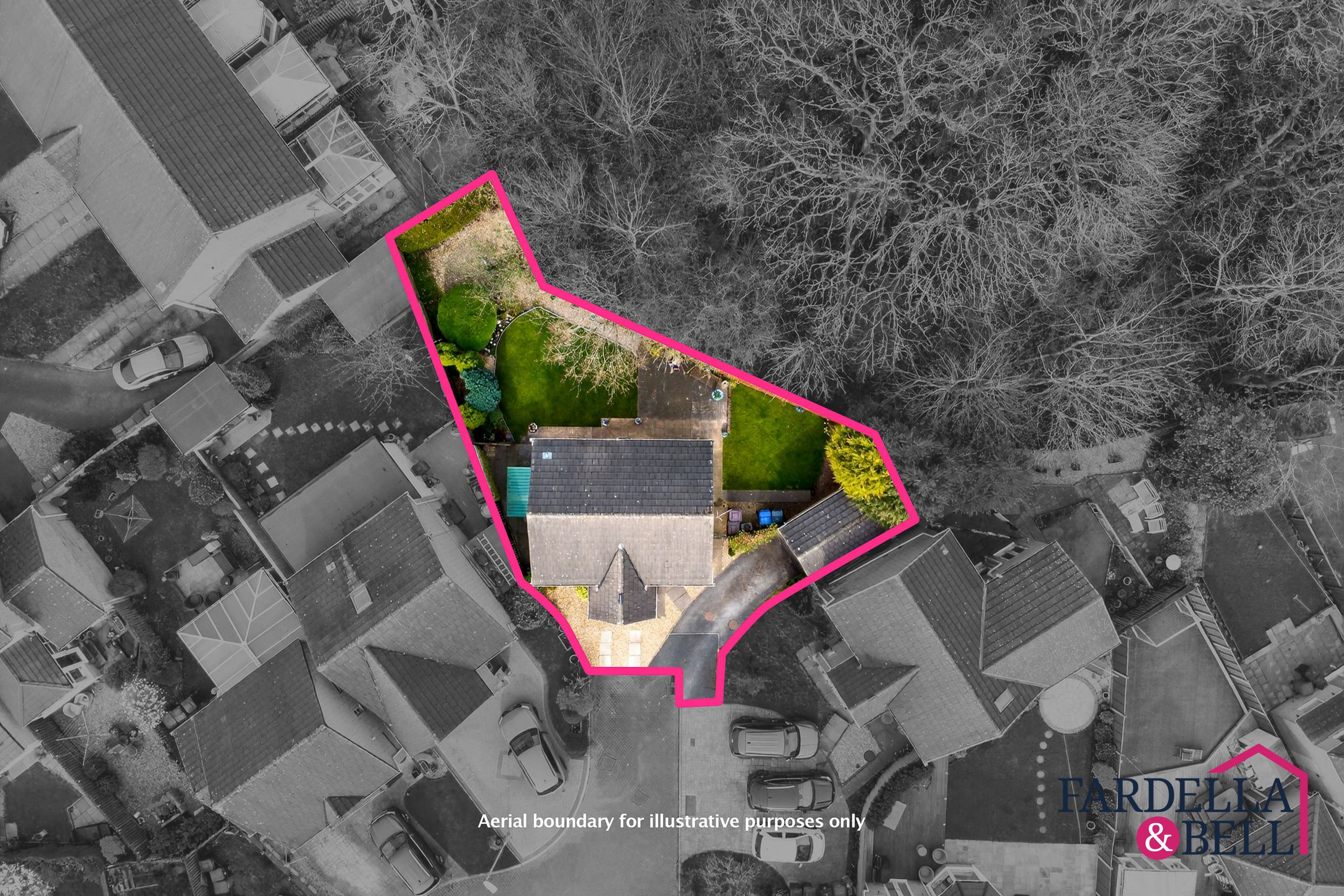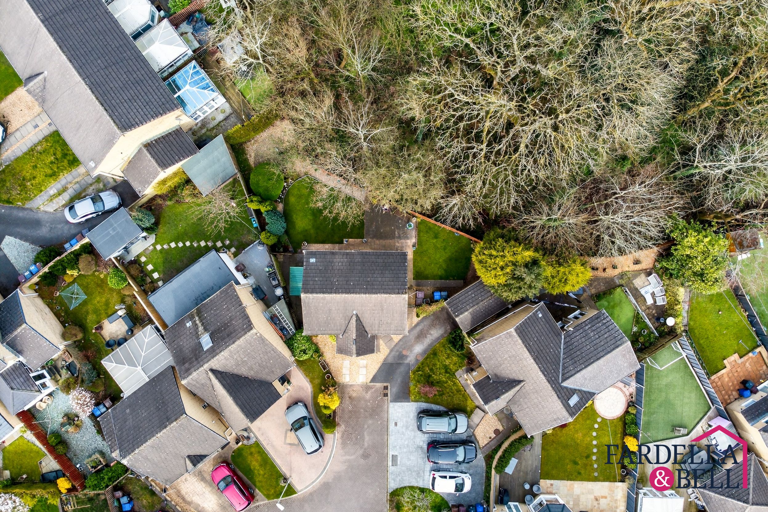 Set within a quiet cul-de-sac position on the ever-popular development, this impressive home occupies a generous corner plot, offering a rare level of privacy and outdoor space that is difficult to come by. To the front, there is driveway parking leading to a detached garage, providing both secure storage and practical off-road parking for multiple vehicles. The true standout of this home is the wrap-around rear garden, which has been thoughtfully arranged to create a balance of usable lawn, patio seating areas and low-maintenance borders. A spacious paved patio sits directly off the rear of the property, ideal for outdoor dining, entertaining or simply enjoying the peaceful surroundings. The garden continues around the side, opening into a further lawned area bordered by established planting, gravel sections and decorative features, giving a real sense of space and versatility. Backing directly onto woodland, the property benefits from a private, not overlooked aspect to the rear, creating a tranquil setting with a natural backdrop. This position not only enhances privacy but also offers an ever-changing outlook through the seasons, making it particularly appealing for those who appreciate a quieter lifestyle. Additional external features include a useful outdoor storage shed, perfect for garden tools or bikes, along with well-defined pathways and fencing that neatly frame the plot. The overall layout of the garden makes it ideal for families, those who enjoy hosting, or anyone looking for a secure space for pets. For dog walkers and countryside lovers, the location is hard to beat, with immediate access to nearby green spaces and scenic walking routes straight from your doorstep. Combining a tucked-away cul-de-sac setting with a substantial plot, detached garage and a beautifully private rear outlook, this is a home that offers both practicality and lifestyle in equal measure. The Land Registry confirms that the property is subject to restrictive covenants; buyers are advised to seek clarification from their chosen legal representative.