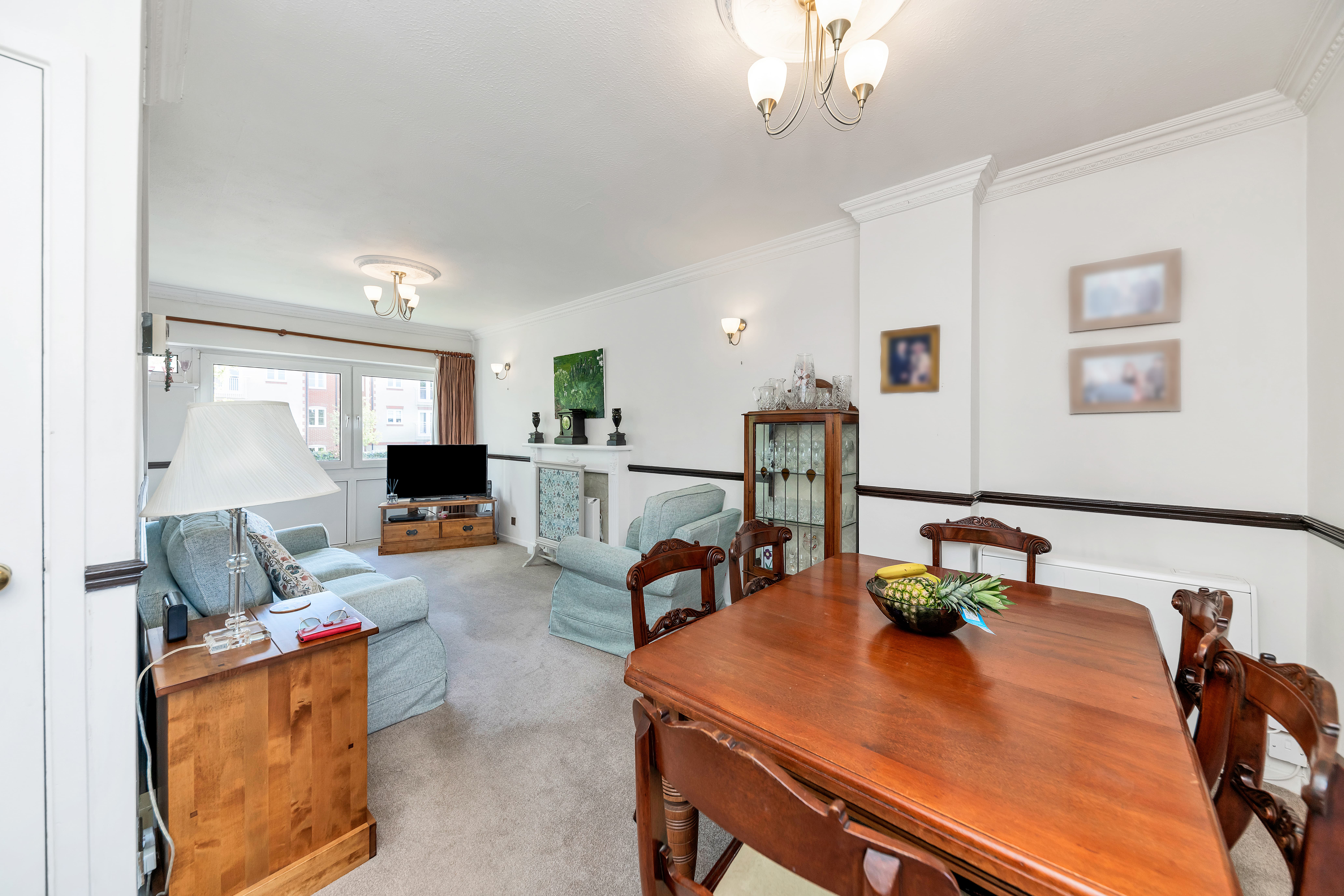 The lounge/dining room is wonderfully open-plan and bright, benefiting from a window to a front aspect, plush carpets, pendant lighting, a feature electric fireplace and ample space for a variety of lounge, dining and storage furniture.