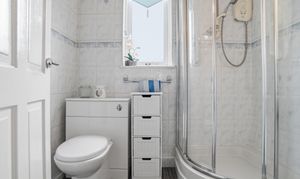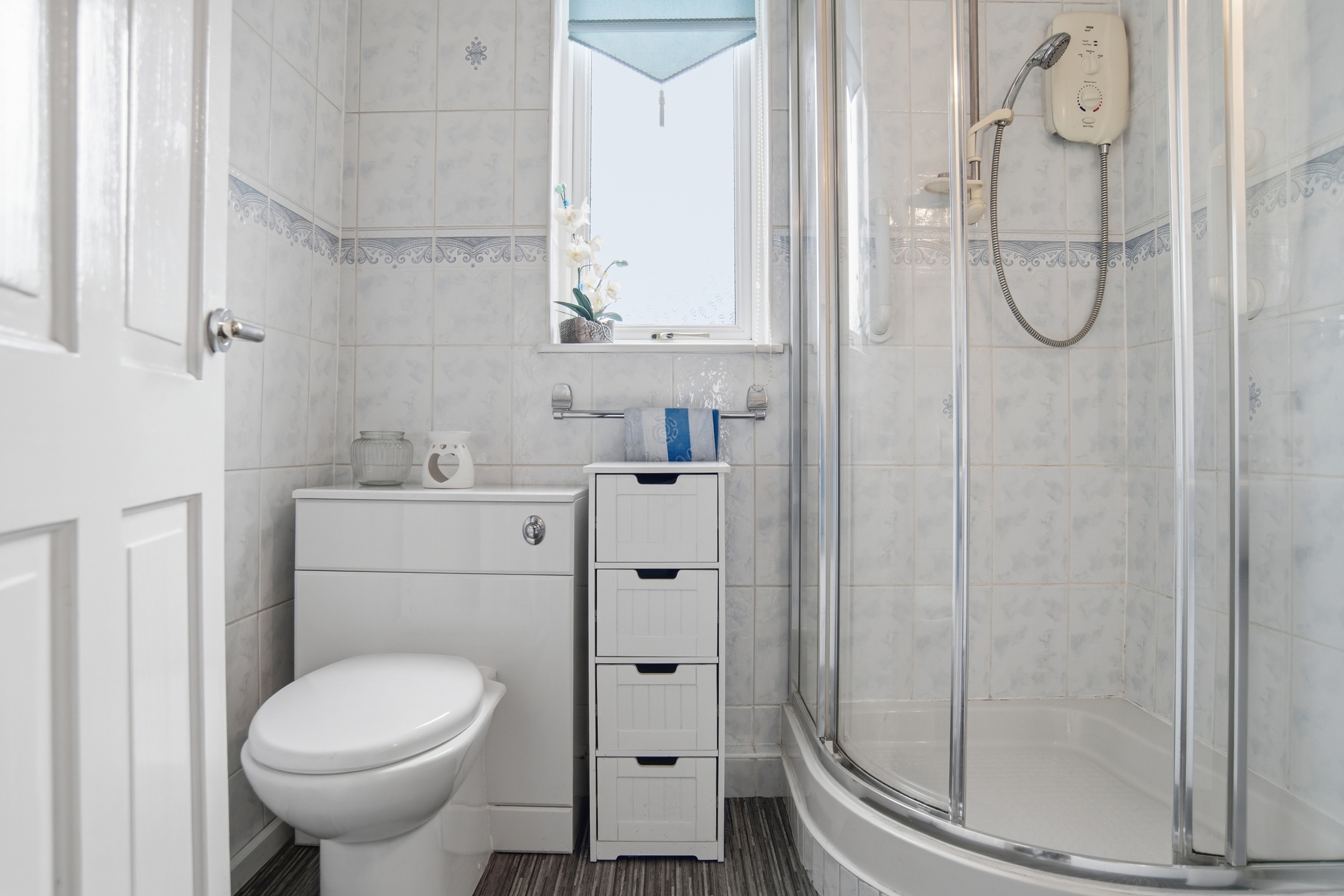 Also located on the ground floor towards the rear is the main bathroom, which is fully tiled and comprises a three piece suite including a standing shower, providing practical and convenient ground floor facilities.