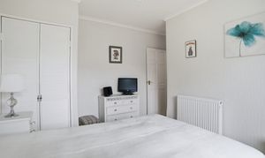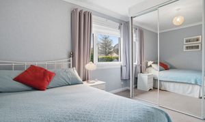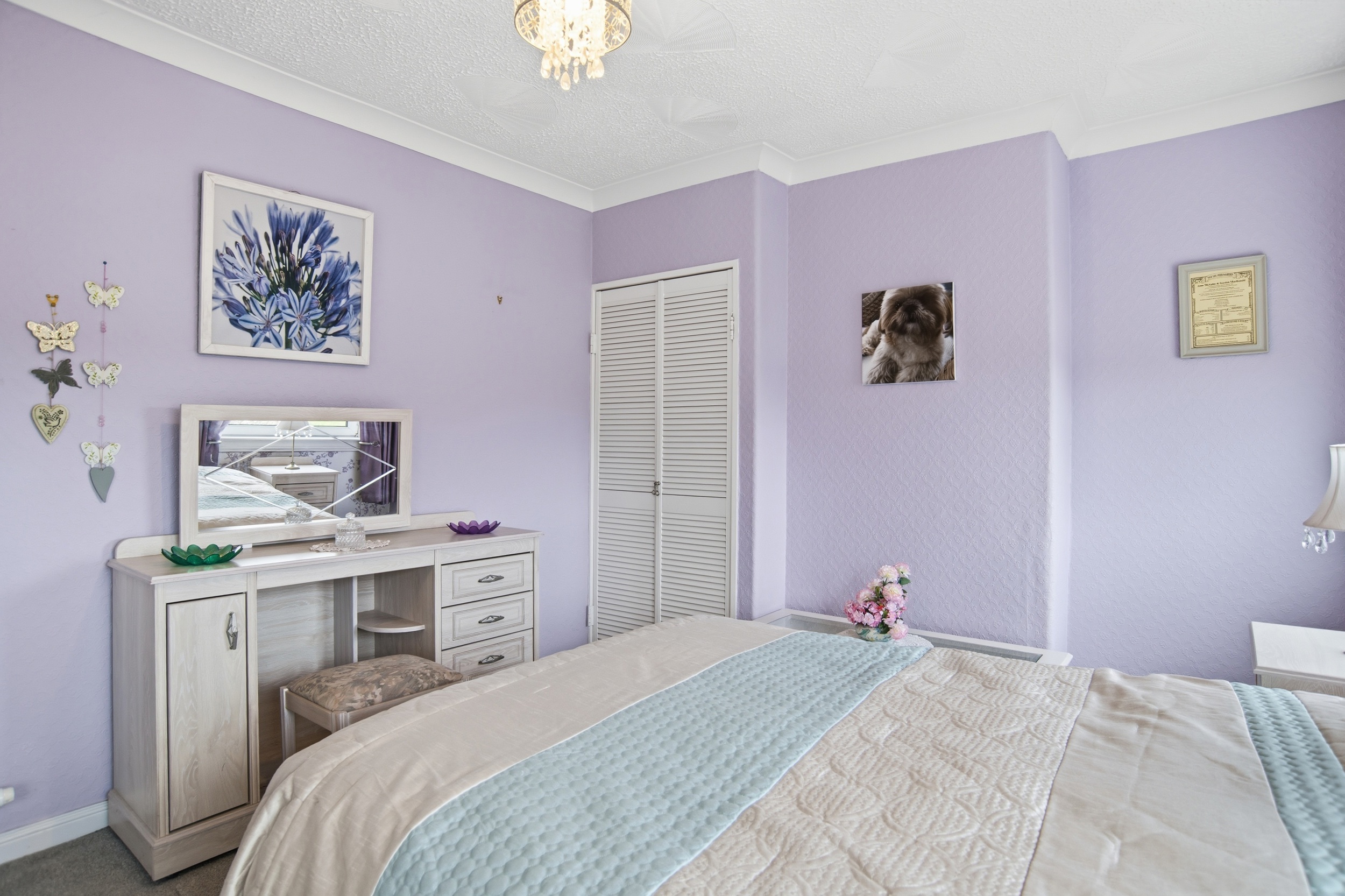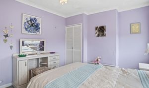 The property offers three well proportioned double bedrooms. The principal bedroom is positioned towards the front of the home and comfortably accommodates a king size bed with bedside cabinets, while also benefiting from a large fitted wardrobe. Bedroom two, located to the rear, accommodates a double bed with bedside cabinets and offers space for additional wardrobe furniture. Bedroom three is another versatile double bedroom that can comfortably fit a double bed with bedside cabinets and can easily be configured as a bedroom, office or guest room.