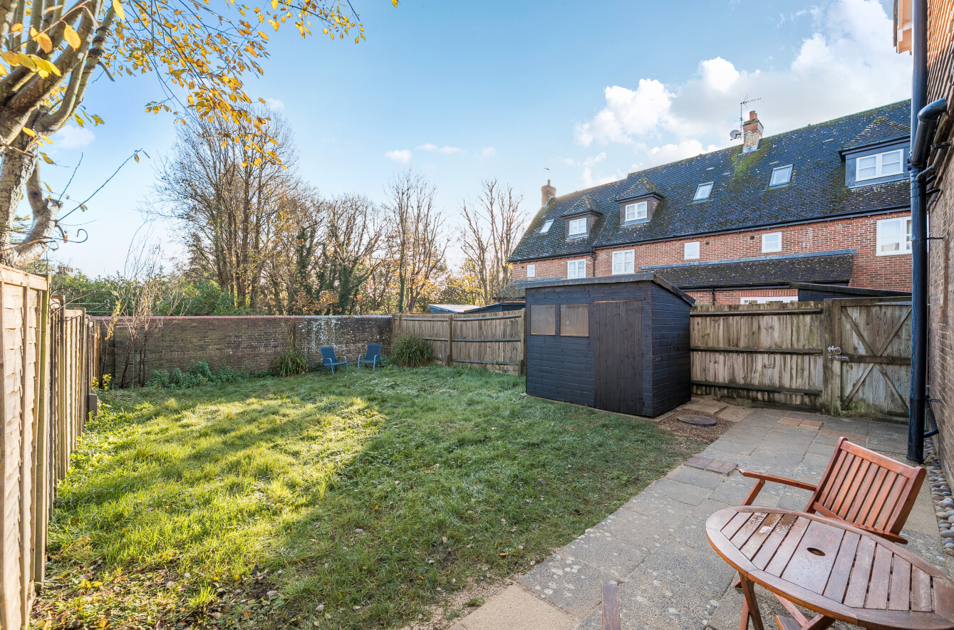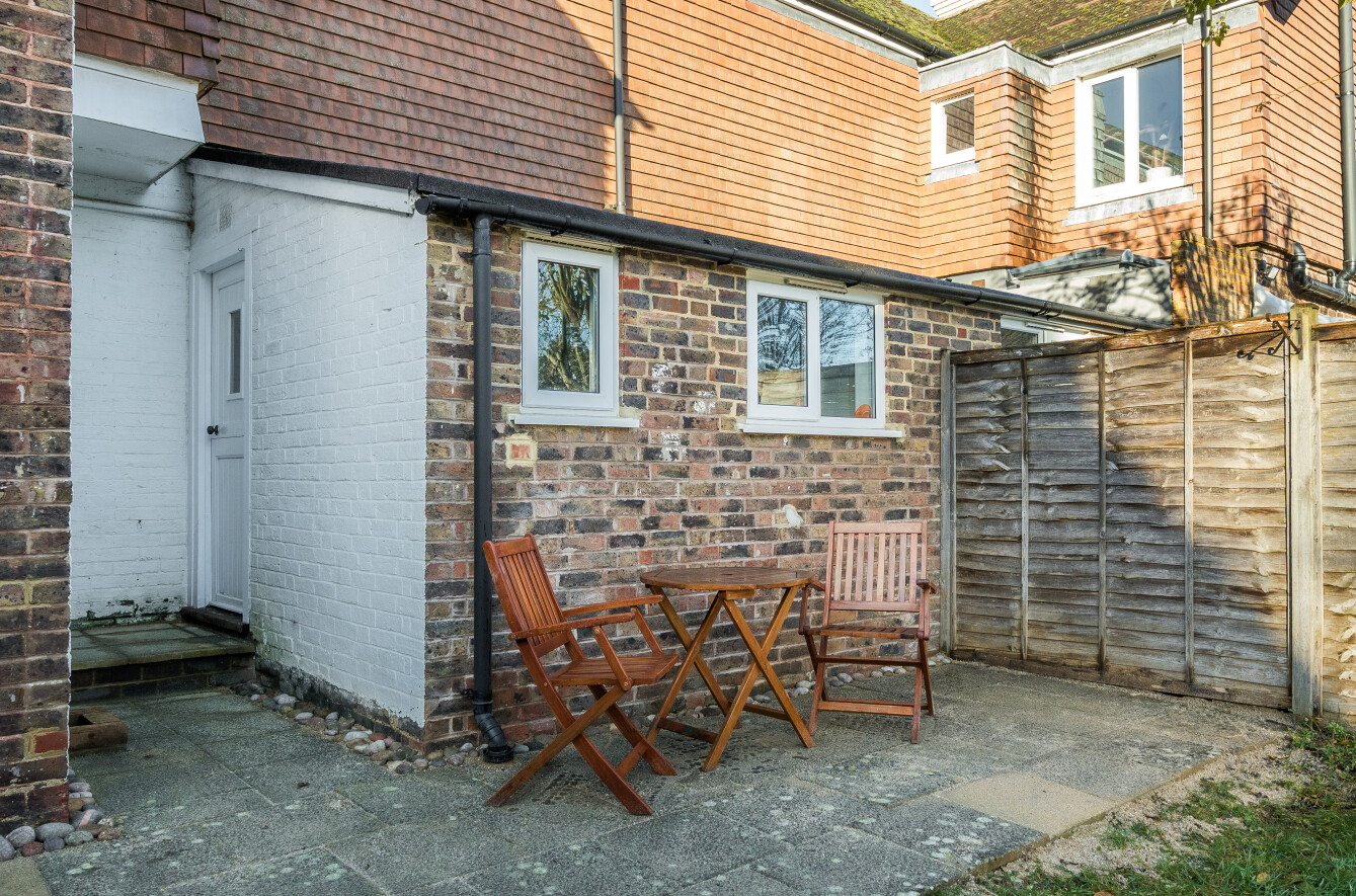 The property is approached via steps with a footpath leading to the rear garden. The landscaped east-facing rear garden is a lovely, part-walled space, ideal for aspiring gardeners. Mainly laid to lawn with a storage shed and generous patio area, ideal for alfresco dining and entertaining. Opposite the house is a courtyard parking area, with allocated parking for one car.