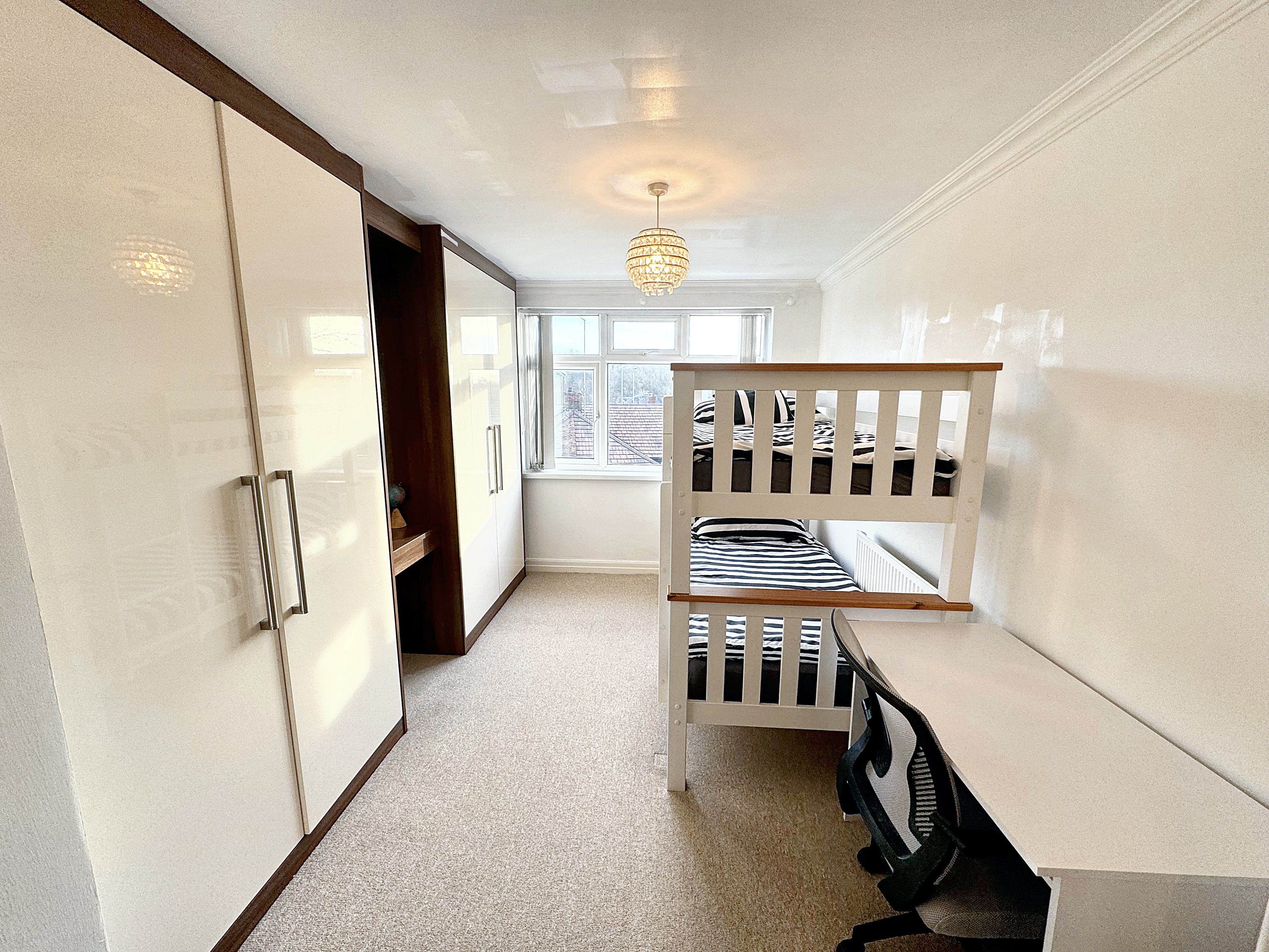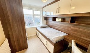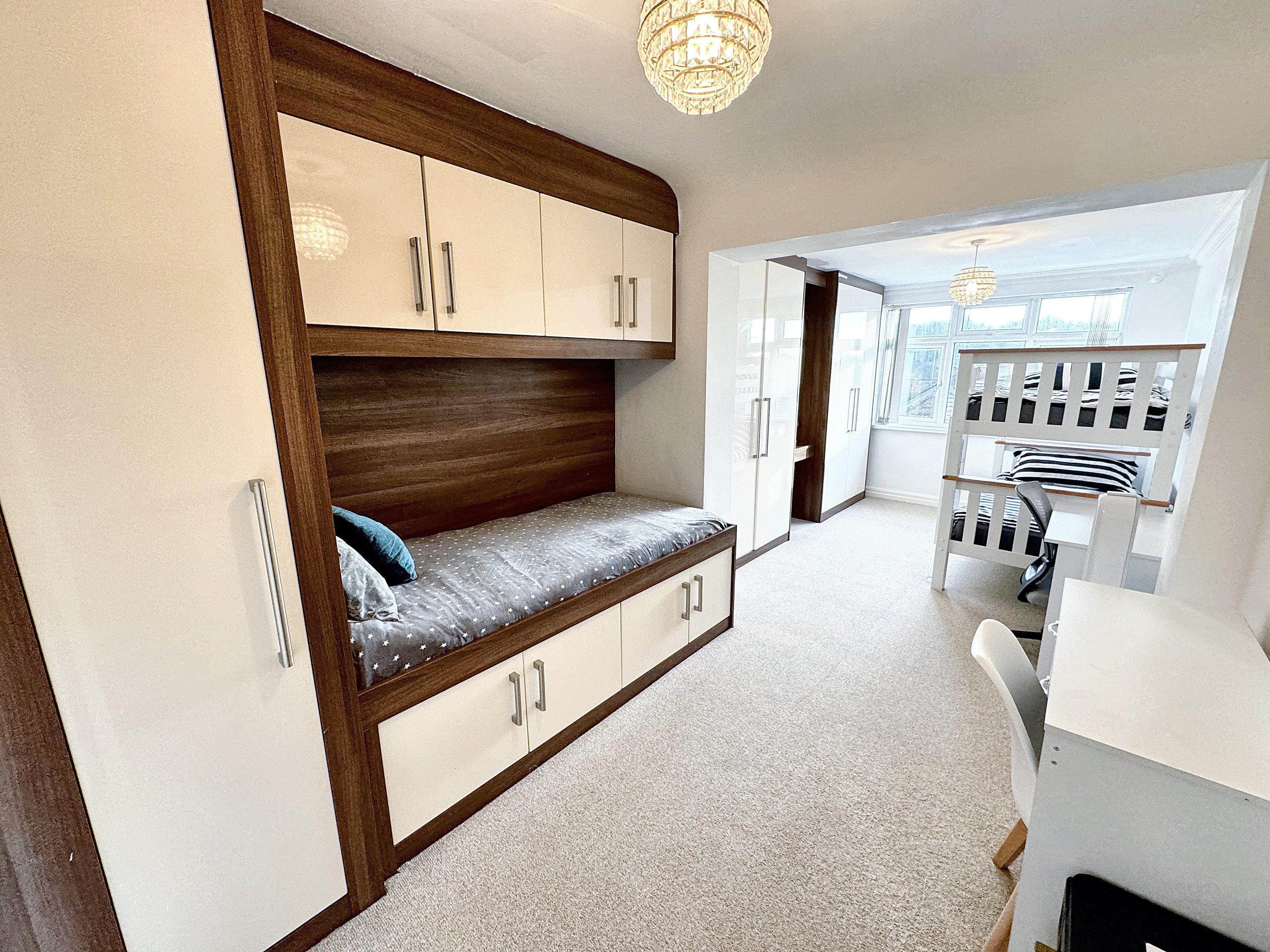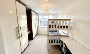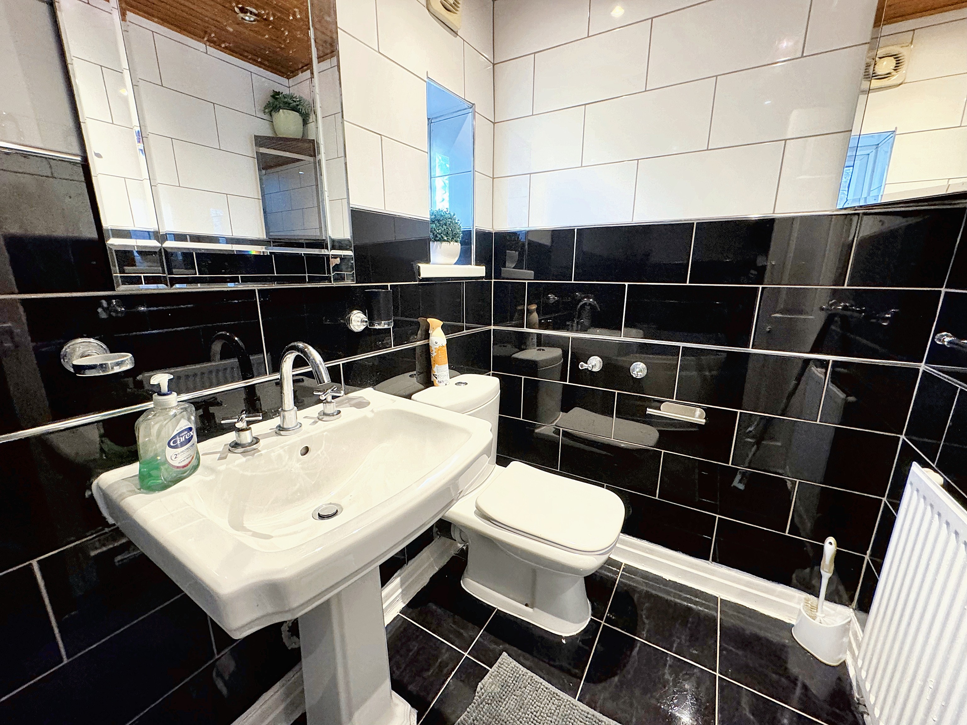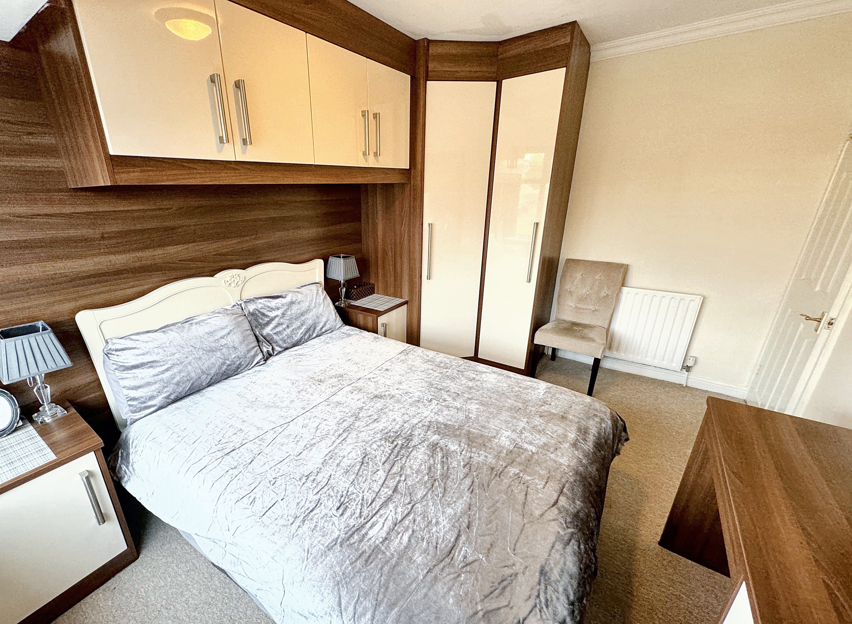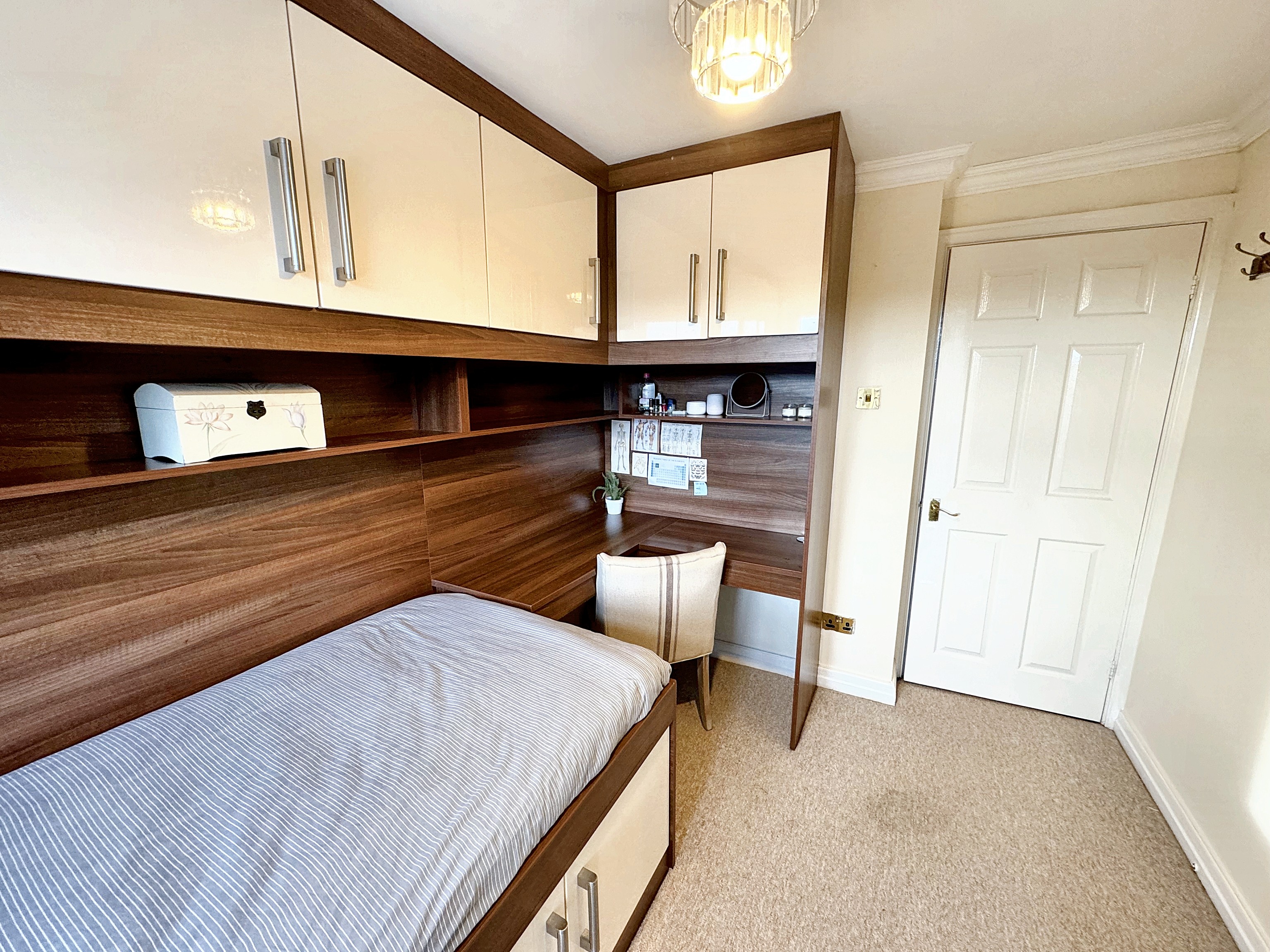 The three bedrooms are thoughtfully designed to offer comfort and privacy. The master bedroom is a peaceful retreat, featuring ample space, and an ensuite bathroom for your convenience. There are an additional two double bedrooms all with fitted furniture and ample storage space. The family bathroom offers a sleek and modern tiled finish with a three piece suite with a freestanding bath, with a further second shower room with white three piece suite including walk-in shower, wc and sink.