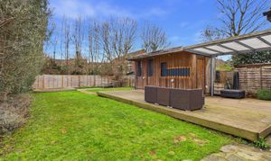 The north easterly facing rear garden measures approximately 70ft x 30ft and is mainly laid to lawn, complemented by a generous decking area and a paved patio suitable for outdoor dining. The garden also features a good sized log cabin with full electrics, space for appliances, a sink and generous storage cupboards. Further benefits include external power points, garden lighting, a garden tap and side access.