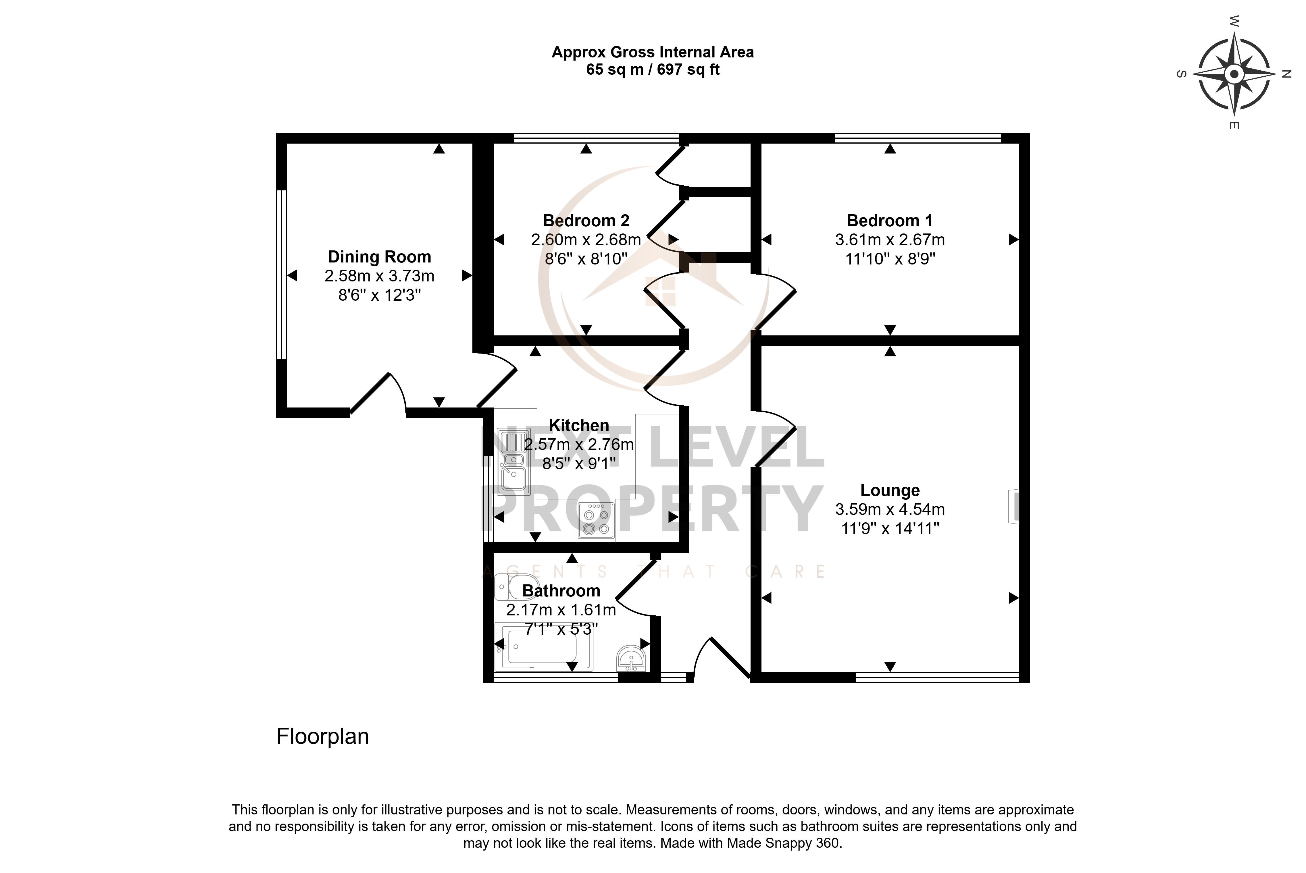 The accommodation is thoughtfully arranged and perfectly suited to single-level living. A light and welcoming lounge sits at the heart of the home, while the kitchen opens directly into a separate dining room — ideal for everyday use or entertaining. Completing the layout are two spacious double bedrooms and a family bathroom, providing comfort and flexibility for a range of buyers.