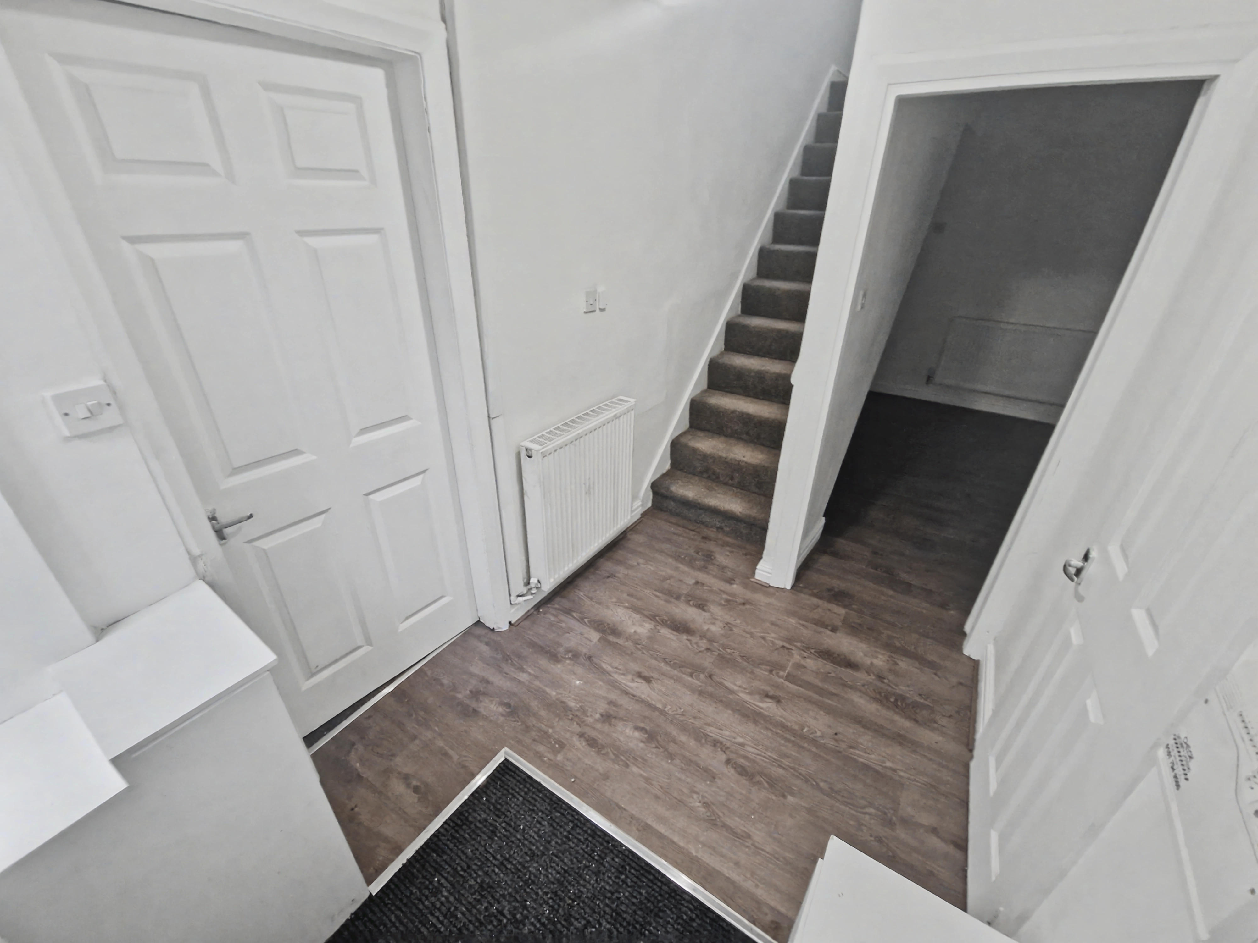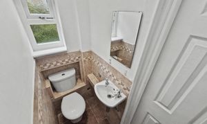 Upon entering, you are welcomed by a spacious entrance hallway providing useful storage space and housing the property meters. Off the hallway is a convenient downstairs WC with wash basin, along with an additional storage cupboard.
