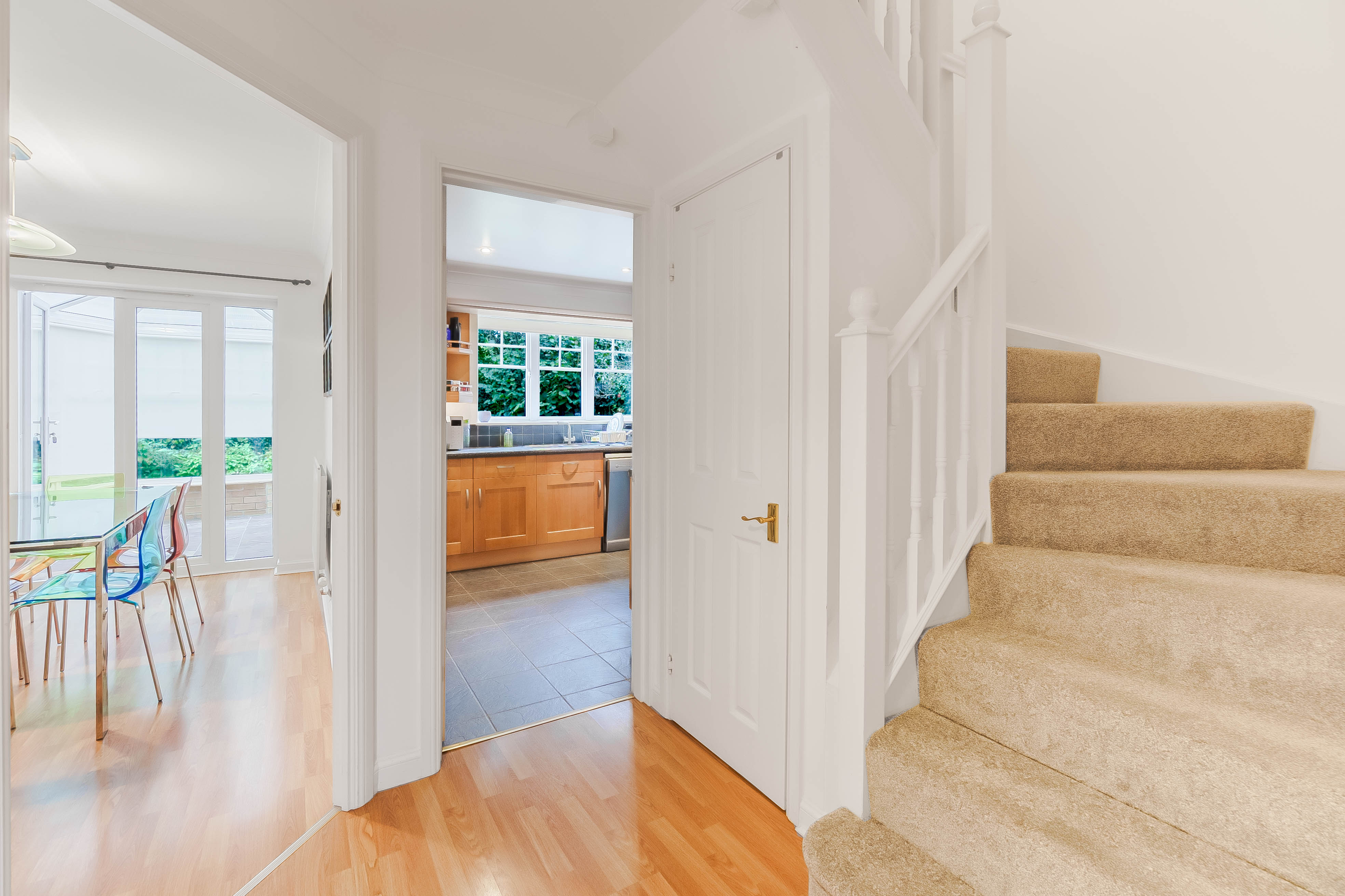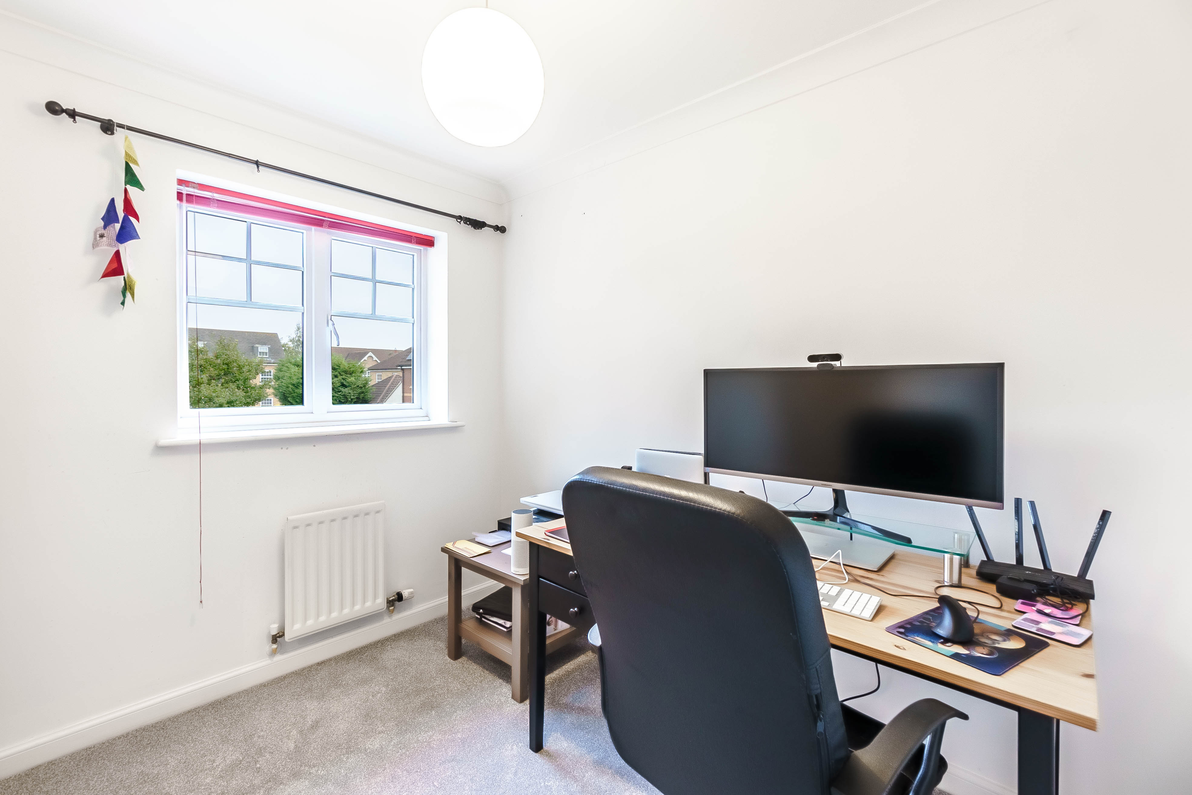 The first-floor accommodation comprises a galleried landing with loft access and an airing cupboard; the impressive master bedroom features a vaulted ceiling and a large picture window, which overlooks a small central green, within this attractive modern development. The master bedroom is en suite with a modern fitted shower room, also included is a range of wardrobes, and king size bedroom if required. There are three further bedrooms, the second a good size double and two generous singles. The three-piece family bathroom includes a bath and shower.