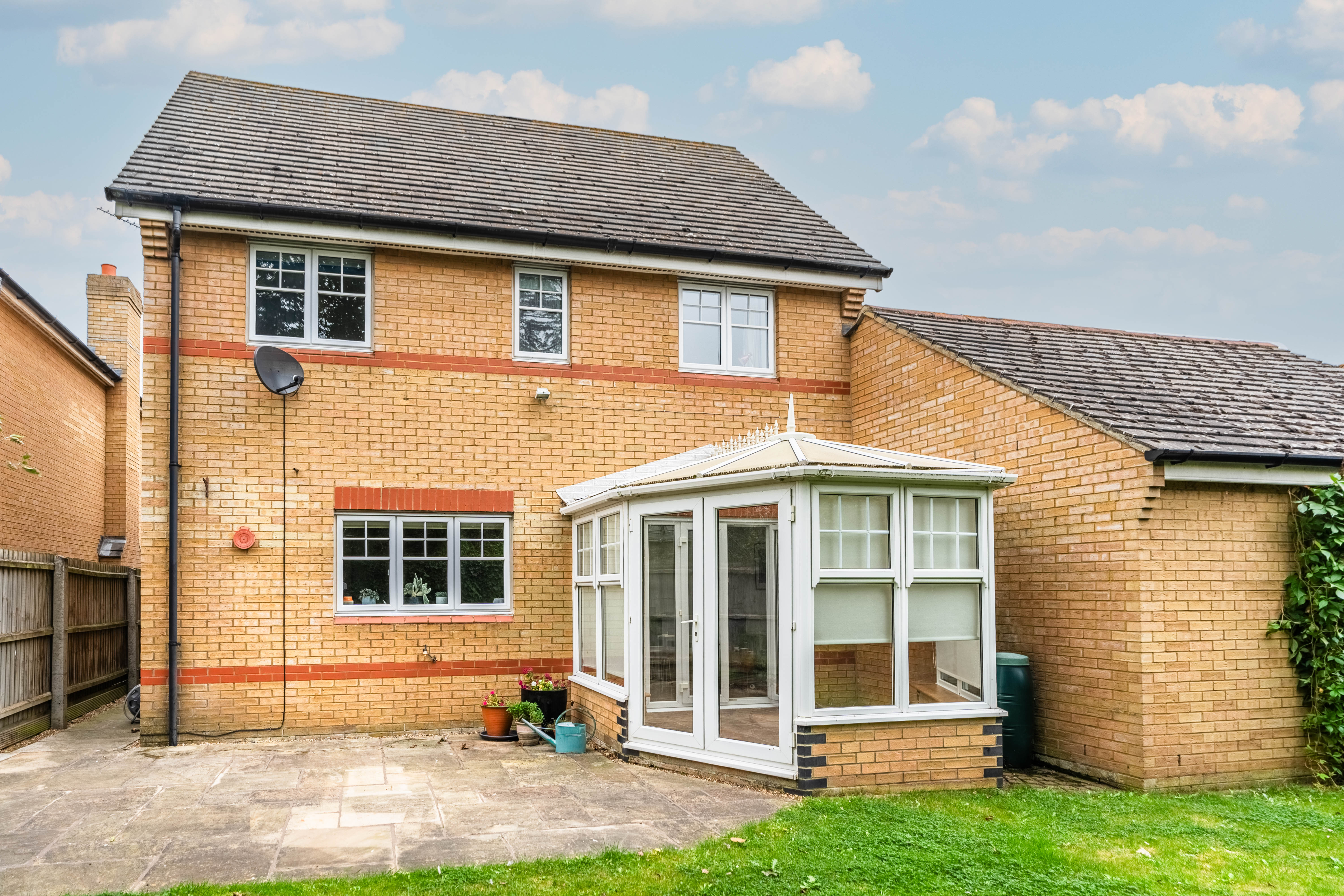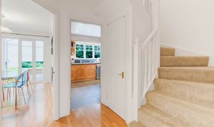 The entrance hall includes an under-stairs storage cupboard, stairs rise to the first floor, a ground floor WC and access to all ground floor accommodation. The generous sitting room features a bay window and XXX. The kitchen is located at the rear of the property with views over the south-facing garden, and comprises a comprehensive range of wall and base units with a built-in oven, gas hob and extractor over. A freestanding fridge/freezer and dishwasher are included in the sale, as well as space for a breakfast table and access to the separate utility room. Providing space for the washing machine, further built-in cupboards, a wall-mounted gas boiler, and a side door provide access to the garden. Alongside the kitchen is the dining room, offering scope to be knocked through to create a more open-plan layout, also leading to the versatile conservatory, which provides an option for a third reception room.