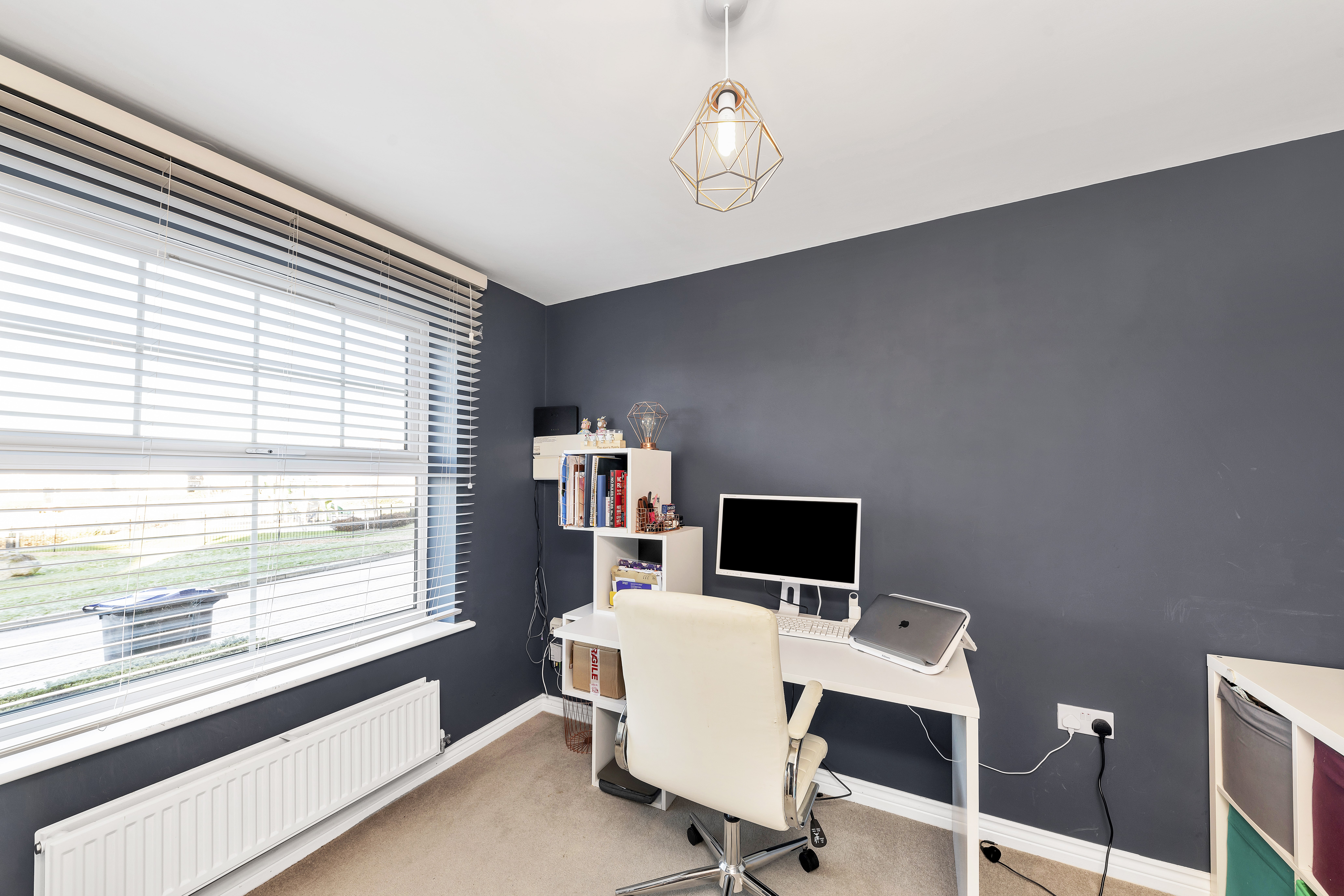 This incredibly spacious detached property enjoys excellent kerb appeal, with an attractive and tidy double frontage, well-maintained front lawn gardens with borders of hedgerows and shrubs, and gated side access to the rear. Upon stepping inside, the entrance hallway is wide and welcoming, with wood flooring, pendant lighting, stairs to the first floor, integrated storage, and doors through to the downstairs living space, including a cloakroom WC and a large office space, which could be used as further reception space if desired.