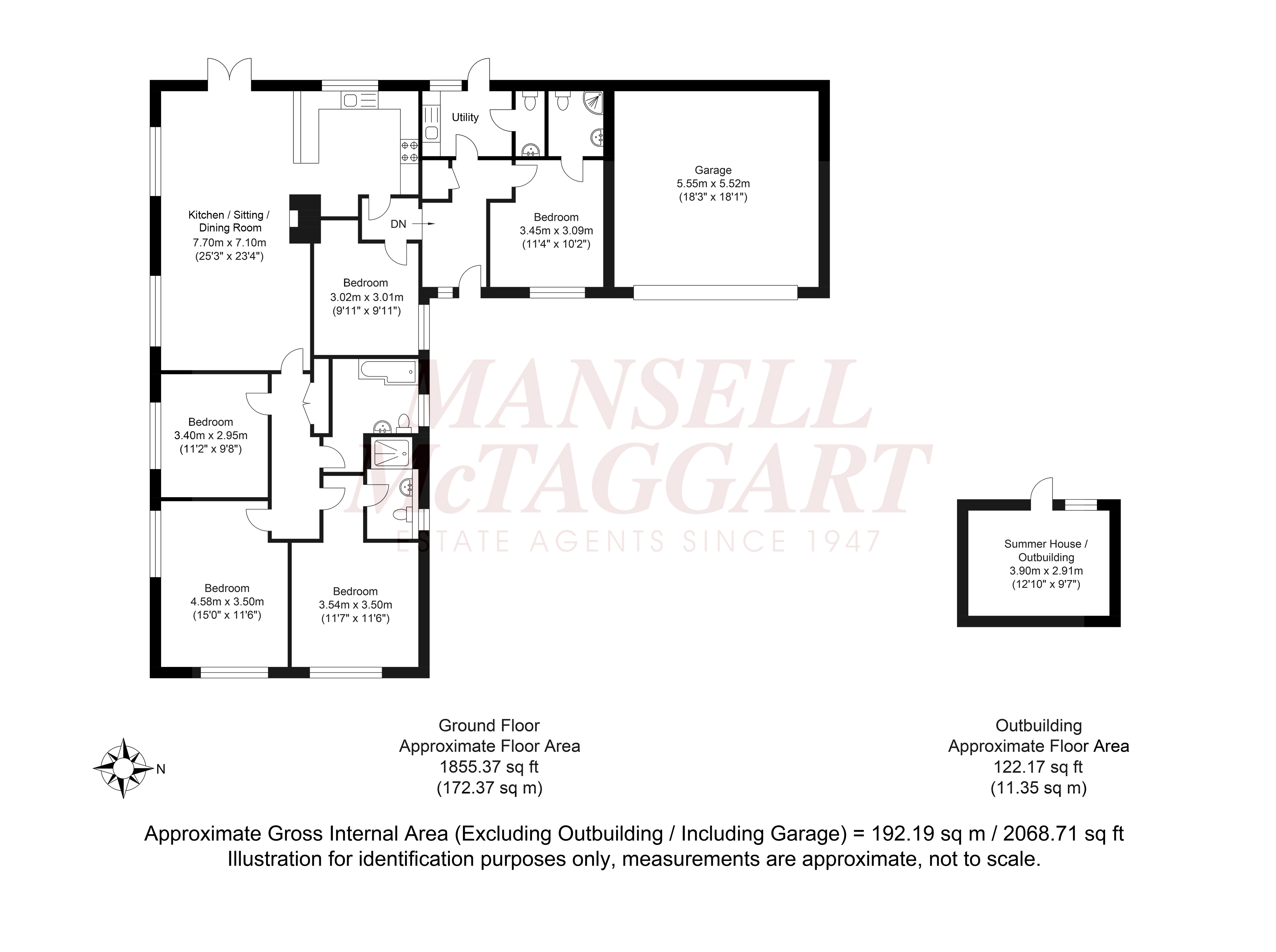 The accommodation comprises: entrance hallway with storage, utility room, cloakroom, and principal bedroom with en suite shower room.