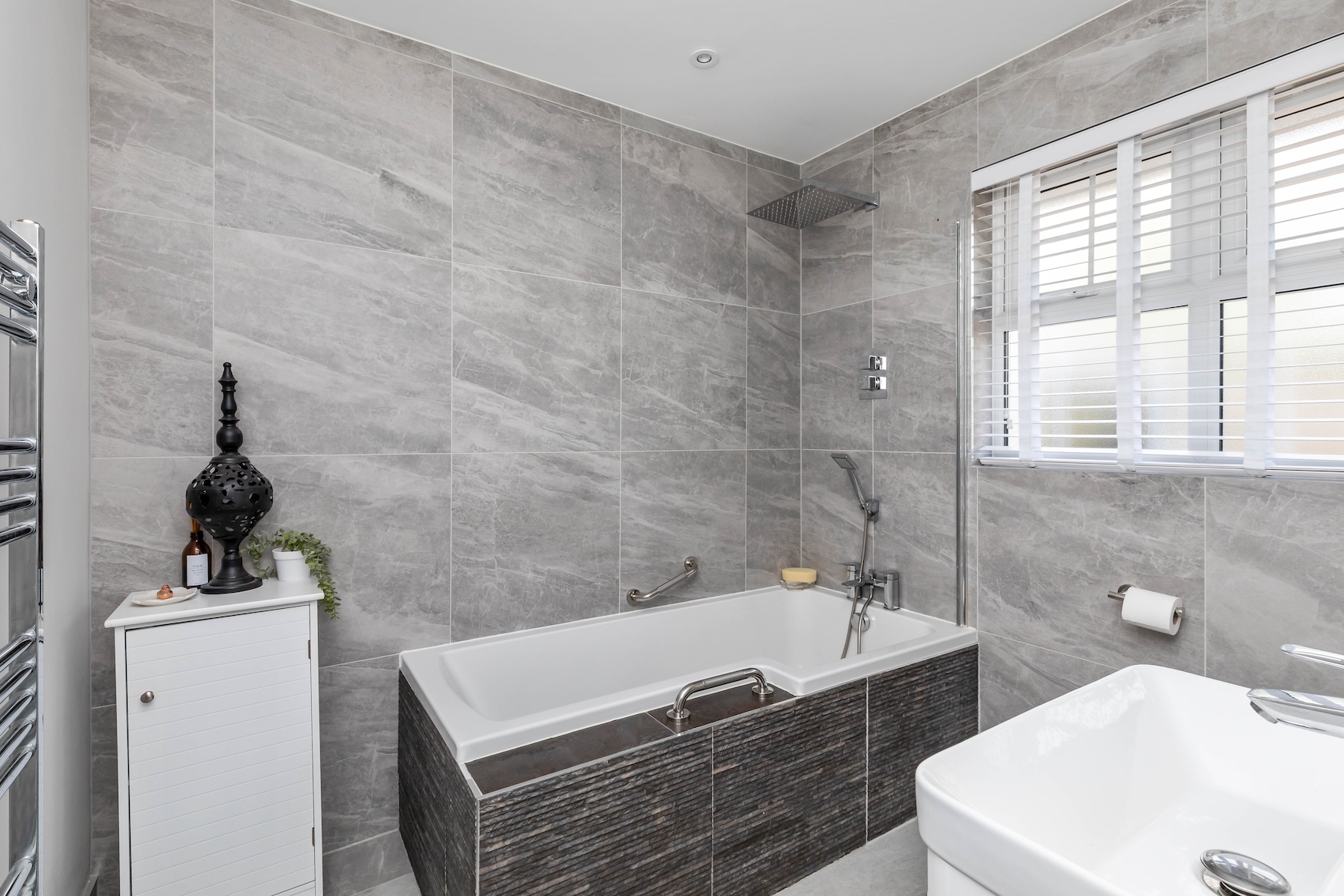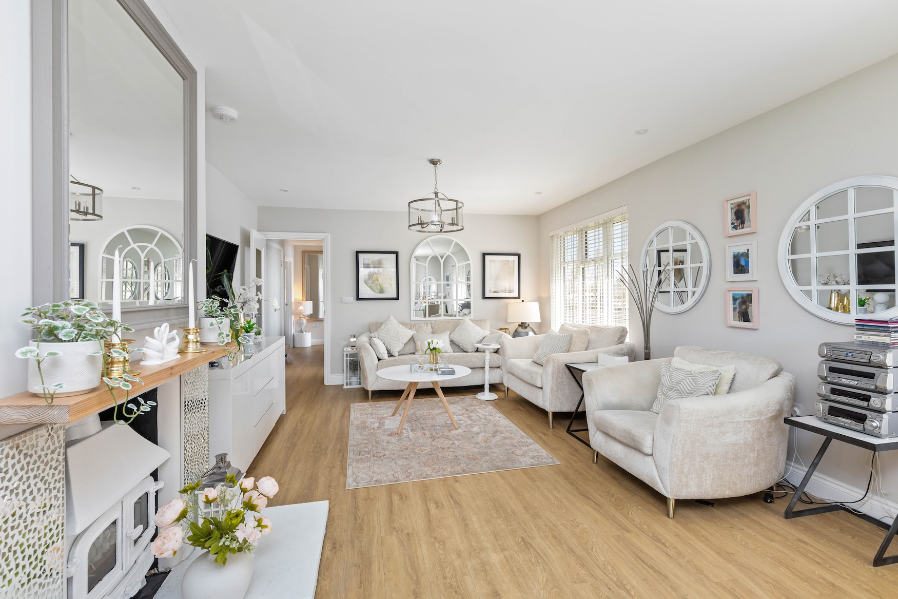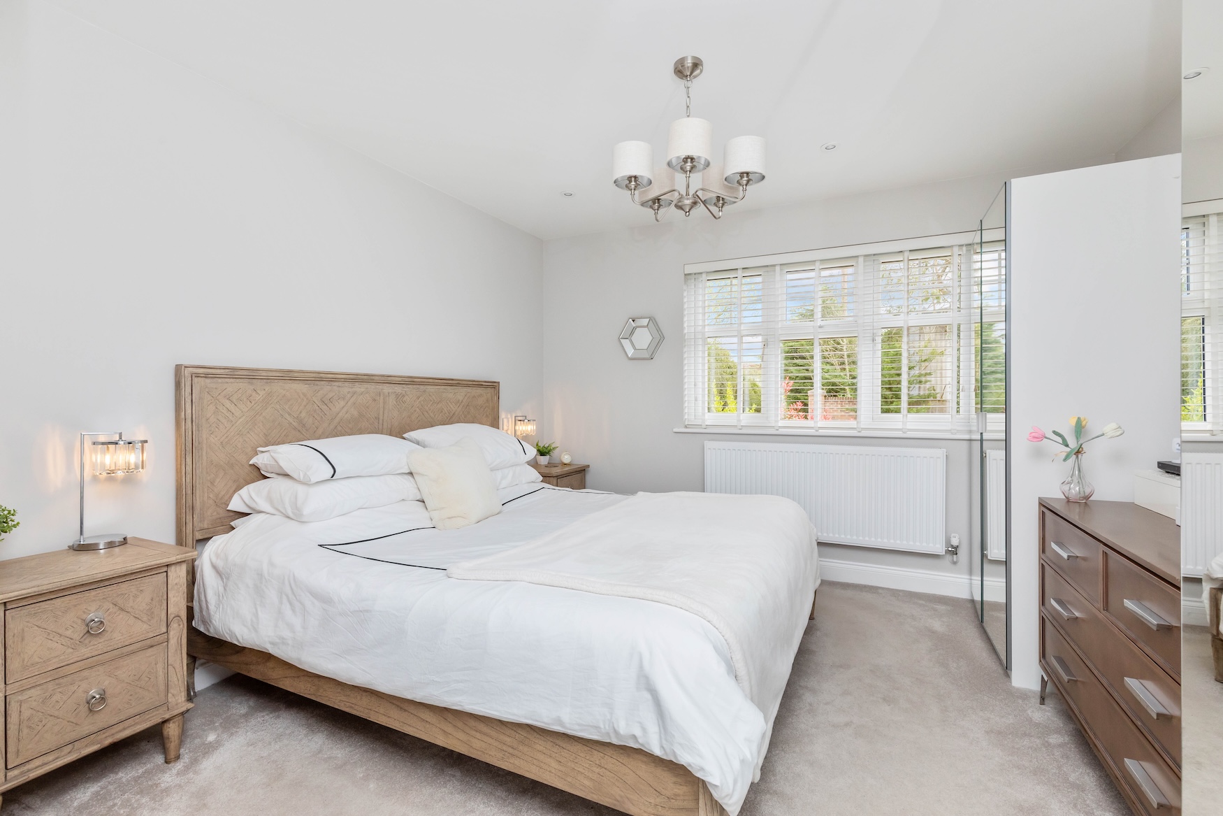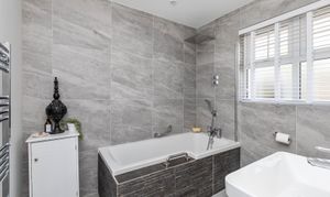 A sizeable driveway provides parking for at least 4 vehicles, leading to the double garage with remote controlled roller shutter doors and power. There is an opportunity to convert this and incorporate the principal bedroom suite into an annex if required.