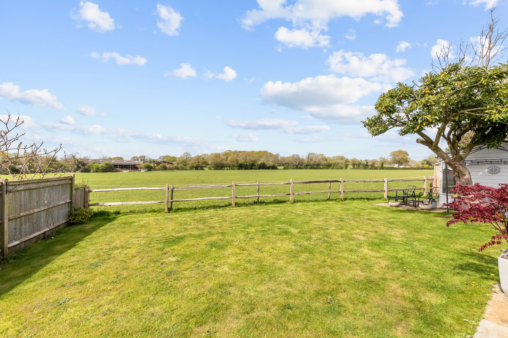The 102’ x 69’ west facing plot (0.19 acres) enjoys a sensational open outlook over adjoining farmland and is perfect for a sundowner.