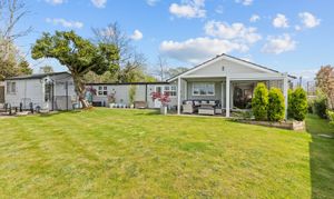 An exceptional 4 double bedroom, 3 bath/shower room detached New England style detached bungalow with large driveway, double garage, superb westerly views over farmland and no onward chain.