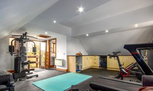 The detached double garage provides excellent secured parking for two vehicles, this in character building also has a first floor which currently is arranged a gymnasium, but could easily be a home office or studio apartment as it has its own kitchen and shower room.