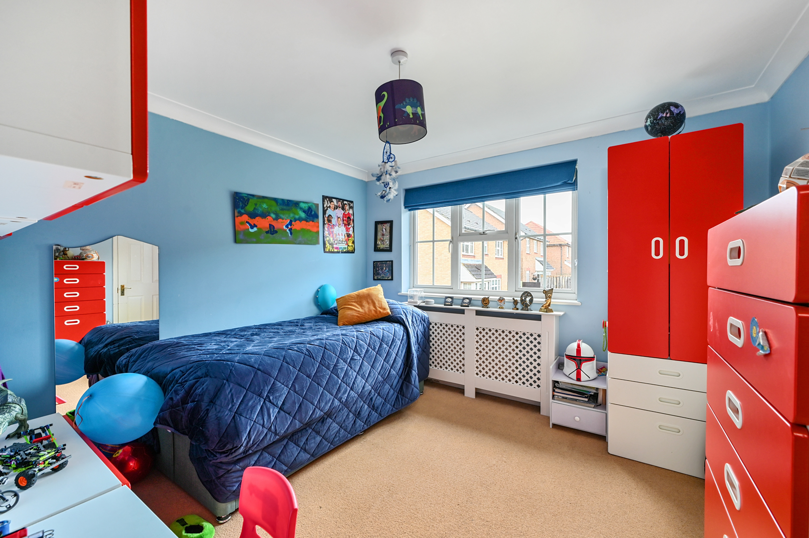 This double bedroom is a well-proportioned and naturally light space, featuring a large window. The room also benefits from direct access to the Jack and Jill en-suite, shared with the neighbouring bedroom, offering added convenience for family living or guests.