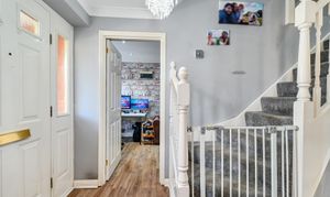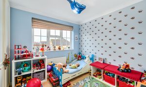 Upstairs, the main bedroom is located to the front and benefits from a box bay window and its own en-suite. Two further double bedrooms sit to the rear and share a Jack-and-Jill en-suite shower room. An additional double bedroom is positioned at the front of the property and includes a fitted wardrobe.