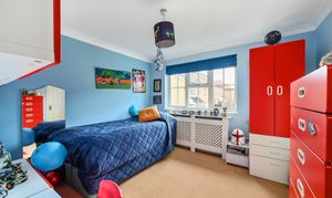 This is a good-sized bedroom with a pleasant front-facing outlook, allowing plenty of natural light through the large window. The room offers a flexible layout suitable for a single or small double bed, along with additional furniture or study space. The room includes a fitted wardrobe.