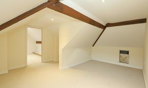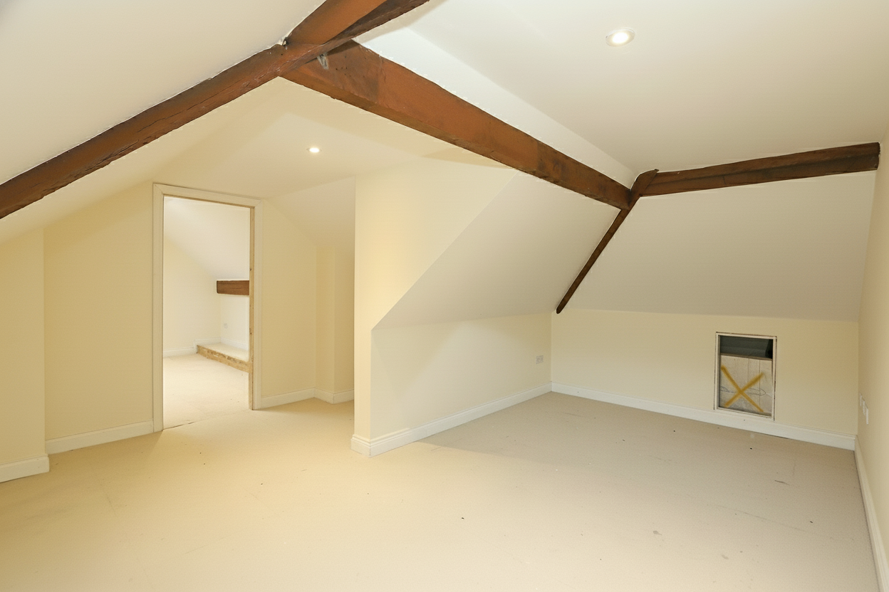 Ascending to the first floor, a remarkable opportunity awaits the new homeowner to customise their living space to their preference. Currently accessed by a ladder, plans are for the installation of a staircase, creating a landing that leads to two well-appointed bedrooms, one of which benefits from an en-suite shower room. This flexible layout presents limitless possibilities for personalisation, adapting effortlessly to individual needs.
