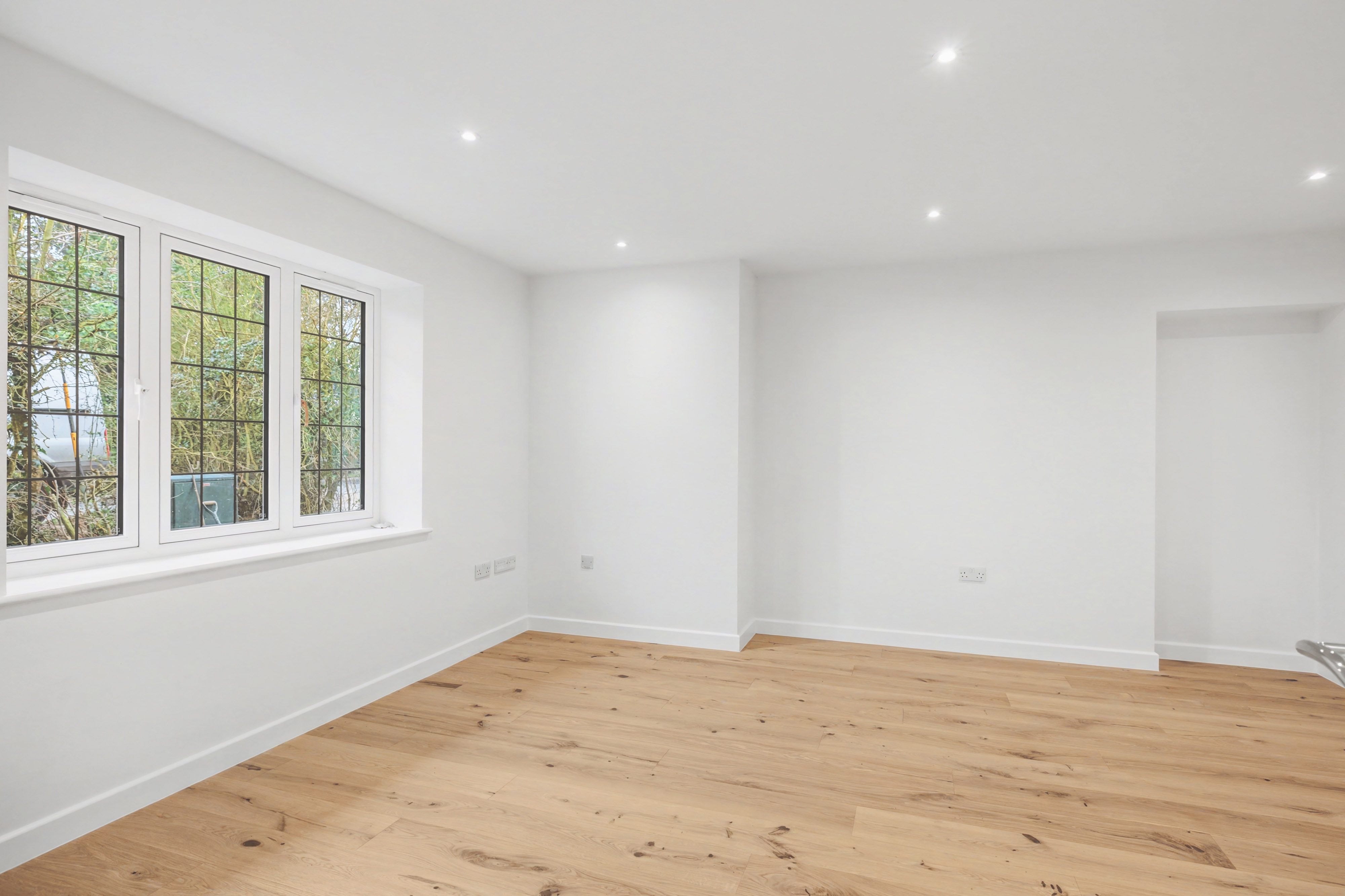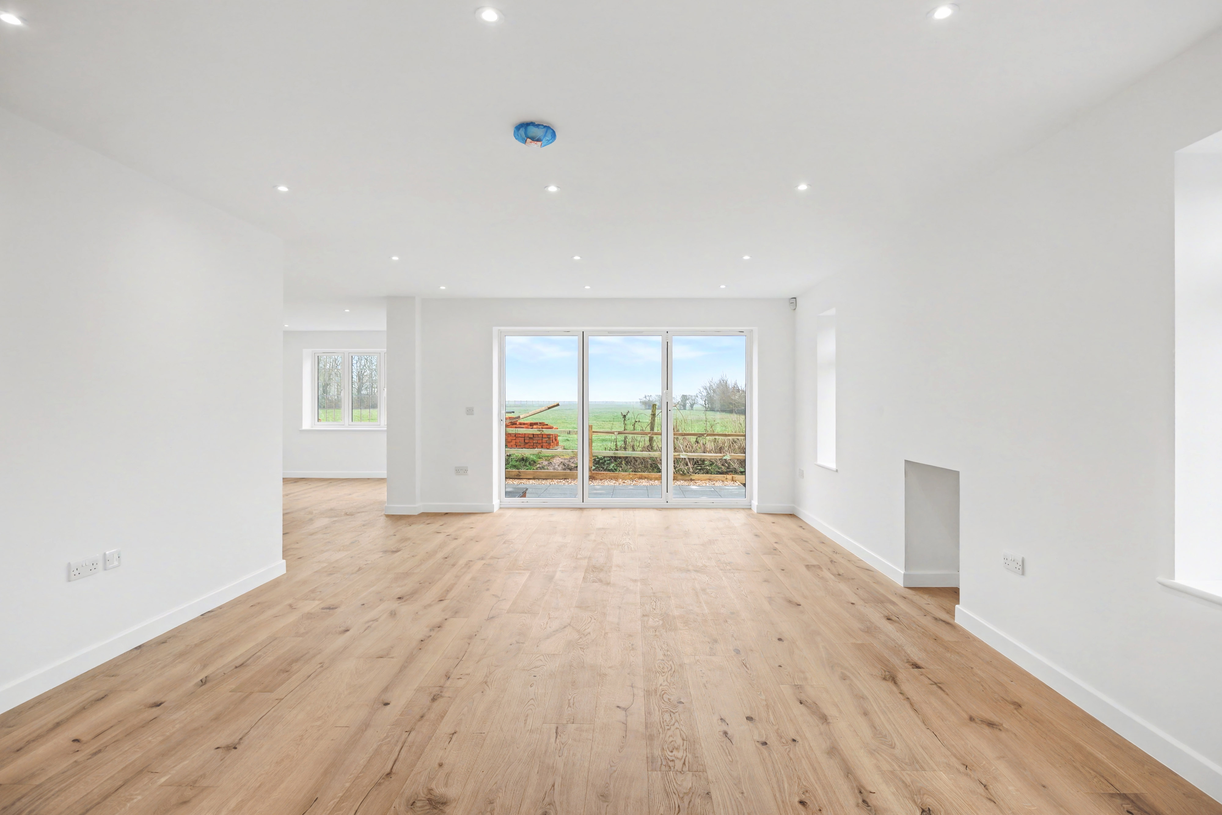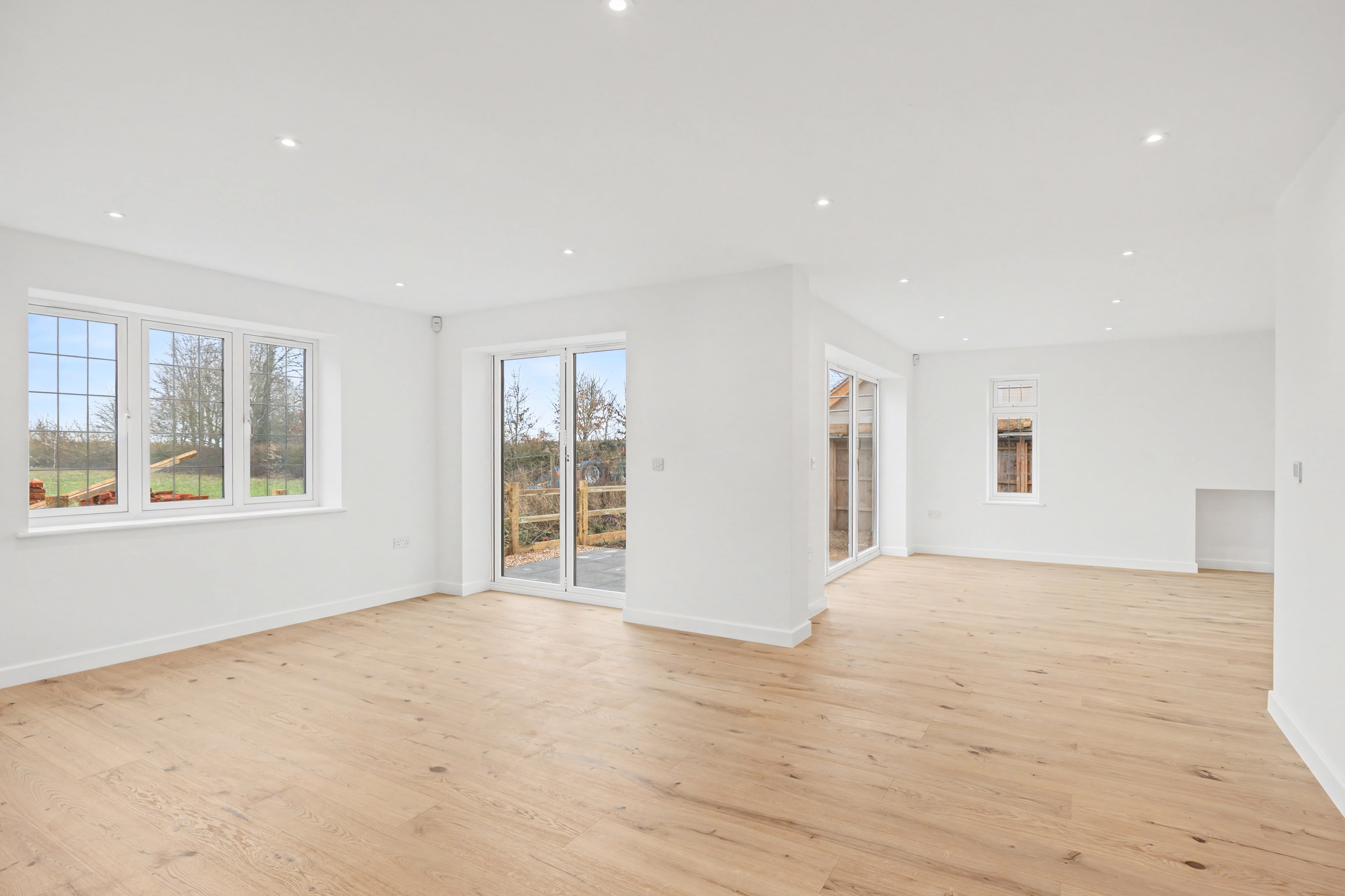 - Impressive 25ft living room with tri-folding doors opening onto the garden