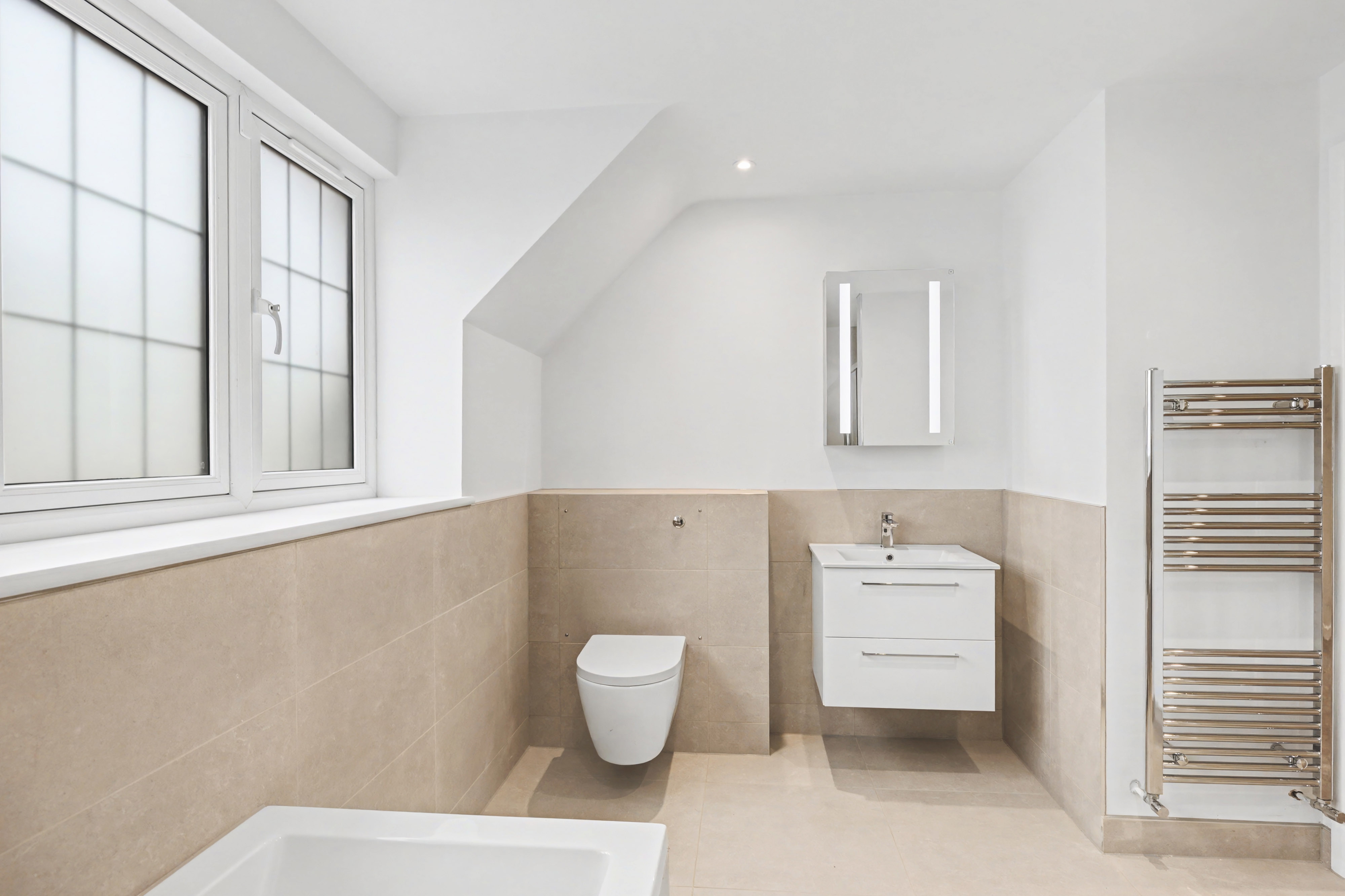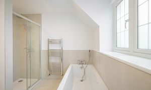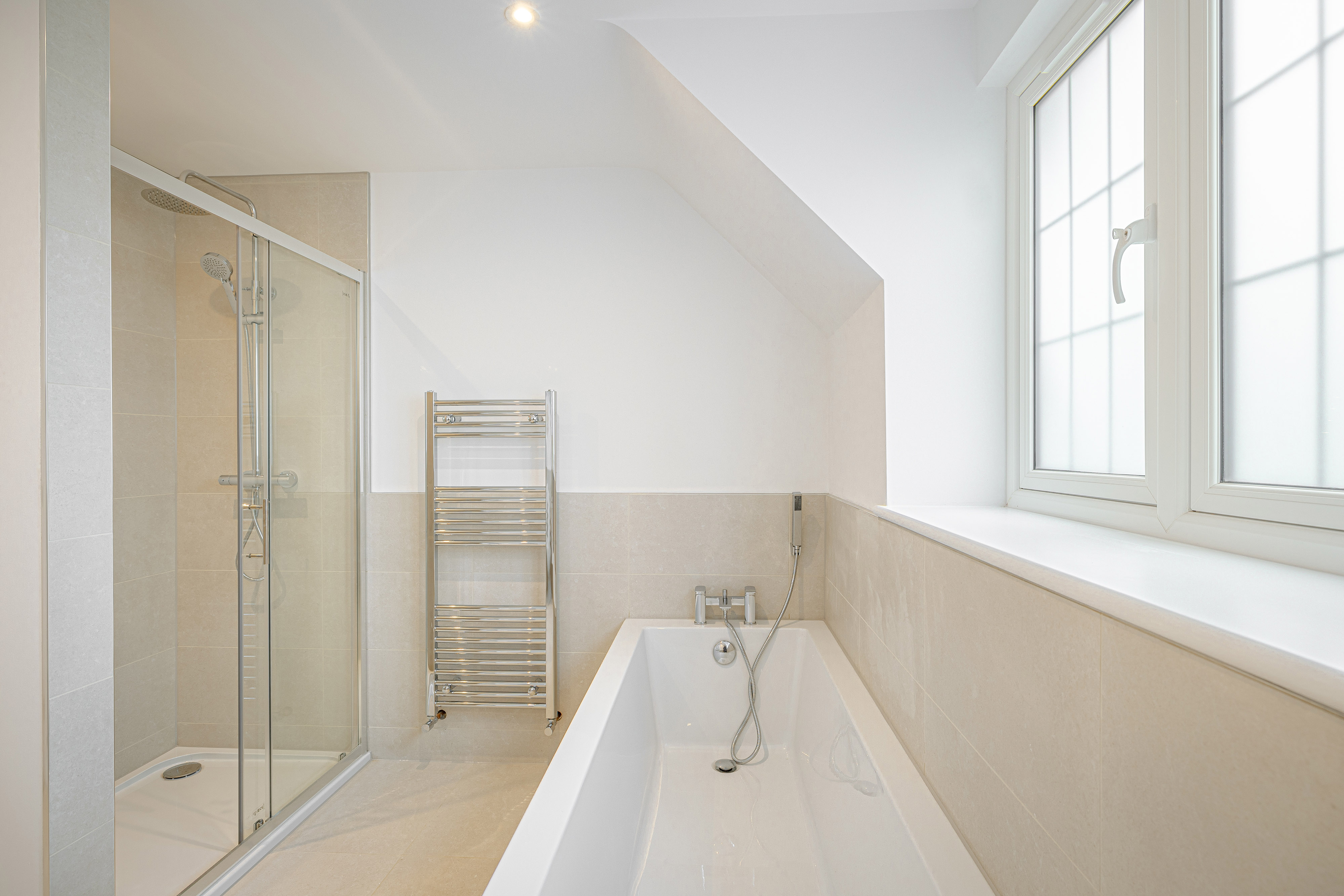 - Stylish family bathroom with both a bath and separate shower
