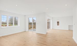 The living room extends to over 25ft and enjoys tri-folding doors opening out to the garden, allowing natural light to pour in and framing views of the surrounding countryside. The fireplace is also ready for a log burner to be installed. A separate study provides flexibility for home working, a snug or playroom with the further option to knock through into the garage if you decide to convert the space into extra accomodation, while a utility room and cloakroom add further convenience.