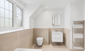 Upstairs, the first floor offers four generous bedrooms, three doubles and a single, arranged around a spacious landing. The principal bedroom is particularly impressive in size and benefits from its own en-suite shower room. The remaining bedrooms are all well-proportioned and served by a beautifully appointed family bathroom, fitted with both a bath and a separate shower.