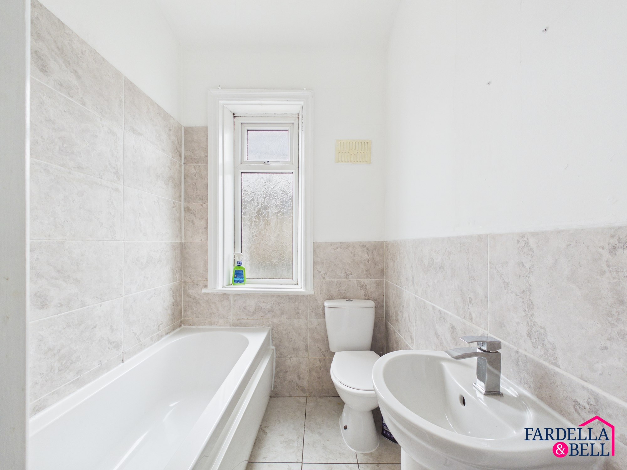 Upstairs, the property provides two bedrooms and a family bathroom. The principal bedroom is a spacious double, comfortably accommodating a full suite of furniture. The second bedroom is a smaller double or generous single, ideal as a guest room, home office, or nursery. The bathroom includes a bath with shower over, WC, and wash basin. It is functional but dated, and most buyers will likely wish to refurbish to bring it in line with modern expectations. As with the ground floor, the first floor requires cosmetic and potentially more extensive updating, allowing buyers to add value and personalise the space.