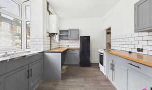 The ground floor opens into a small entrance vestibule which leads through to a generously sized living room. The living space benefits from a bay window that draws in natural light and creates a pleasant focal point to the room. There is ample space here for both seating and dining, making it a flexible area for everyday living. To the rear, the kitchen is arranged in a practical galley style with good worktop space and direct access out to the garden. The layout works well, though the kitchen would benefit from refurbishment, offering a clear opportunity for a buyer to redesign and create a more contemporary space tailored to their needs. Overall, the ground floor offers a solid footprint with good proportions, but it is important to note that work is required throughout.