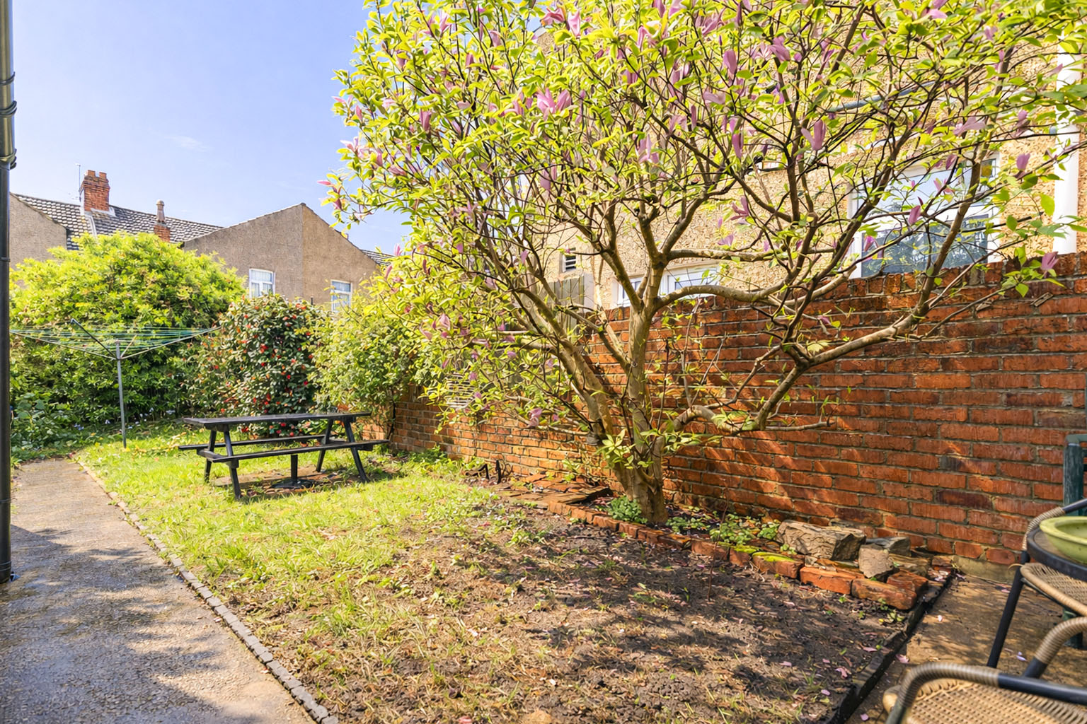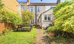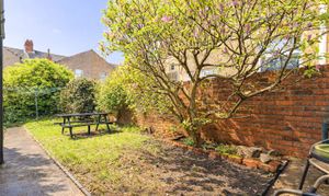 To the rear of the property is an enclosed garden, offering space for outdoor seating and a private area for relaxing or entertaining.