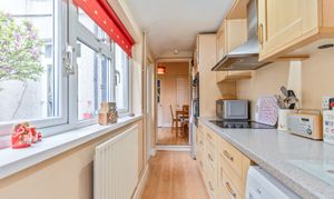 You enter the property through the hallway, where the staircase rises ahead to the first floor and access is provided to the two reception rooms. These versatile living spaces offer ample room for both seating and dining, making them ideal for everyday living and entertaining. To the rear of the property is the kitchen, which provides practical storage and workspace and offers access out to the rear garden.